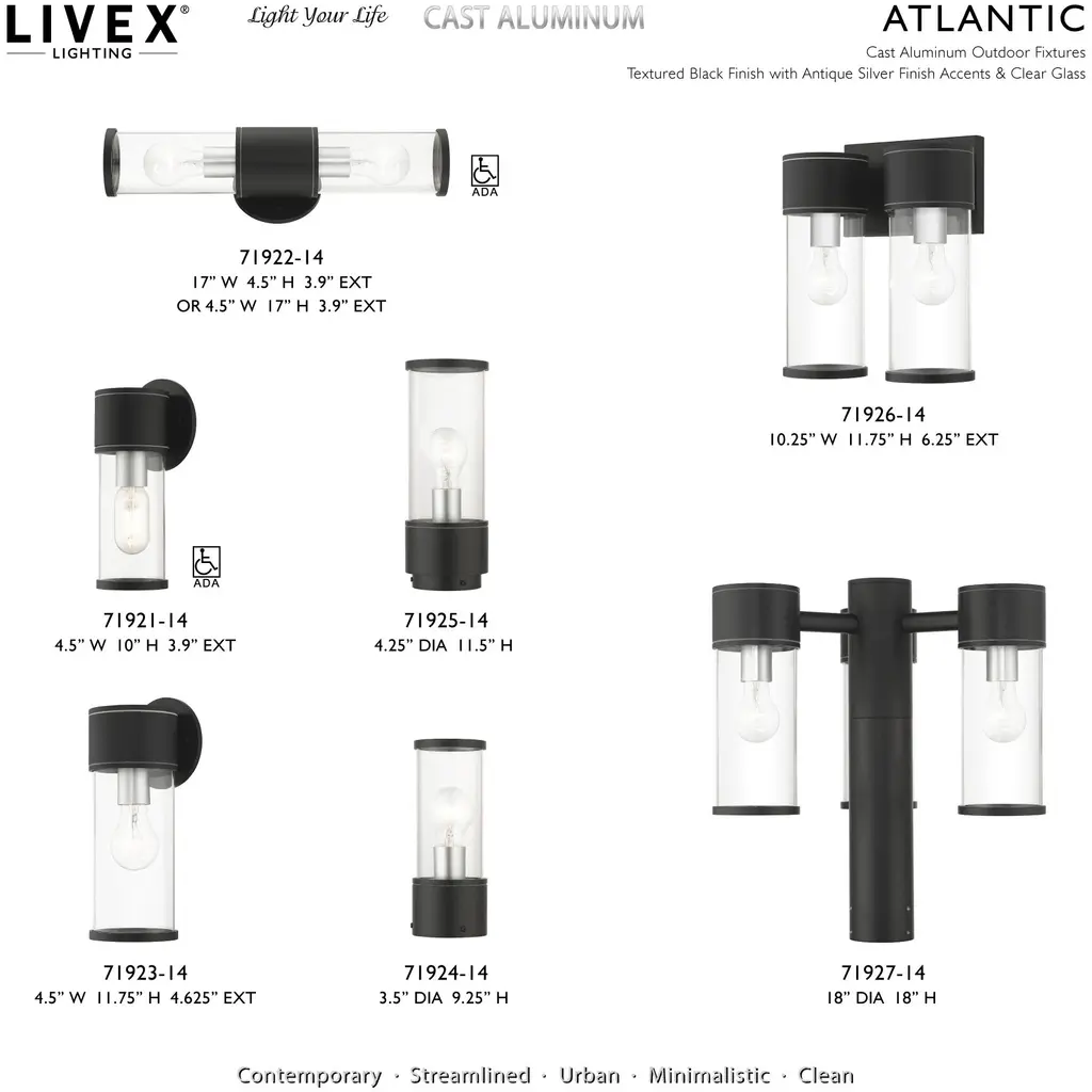 Atlantic 1 Light 4.5 Inch Textured Black With Antique Silver Finish Accents Outdoor Medium Wall Lantern Wall Light