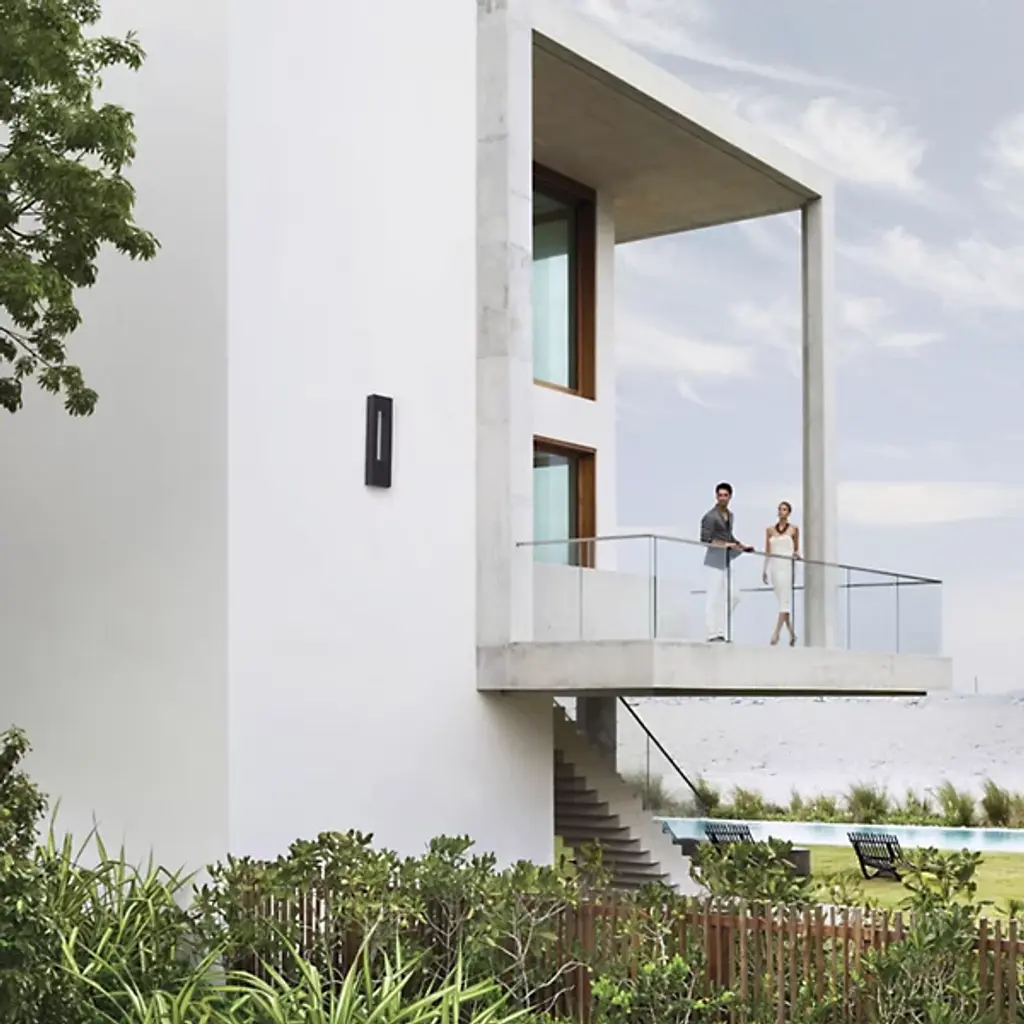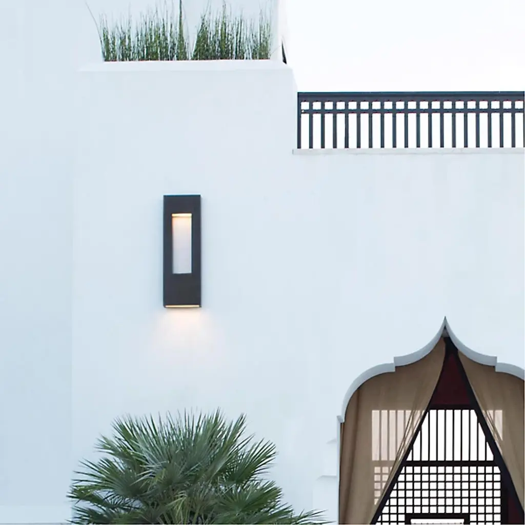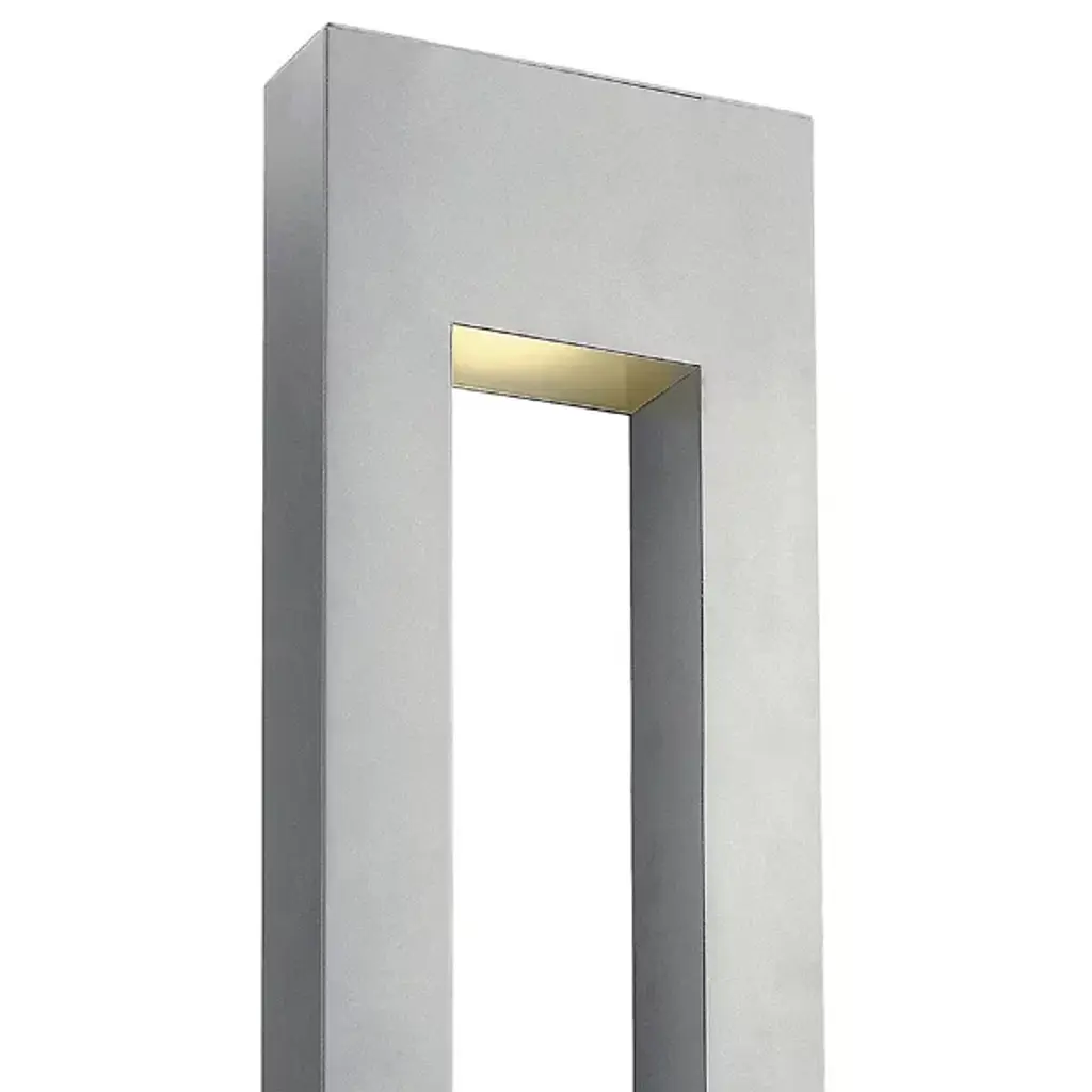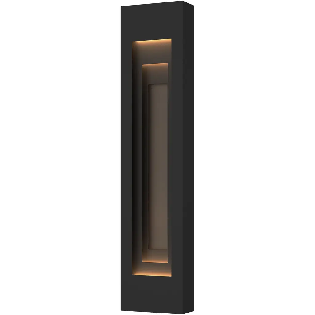 The massive size of the Atlantis Outdoor Extra Large Wall Sconce by Hinkley Lighting gives a strong contemporary impression. Its empty section not only showcases an artistic use of negative space, but also houses 1 of 3 light sources that shine directly down through an etched glass lens. The remaining 2 light sources are located at the base, behind another etched glass lens, and generate a similar downward spill.