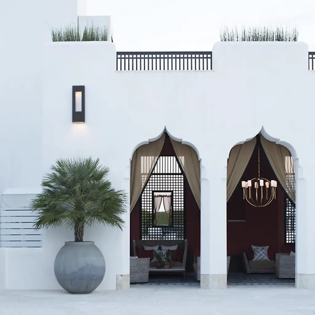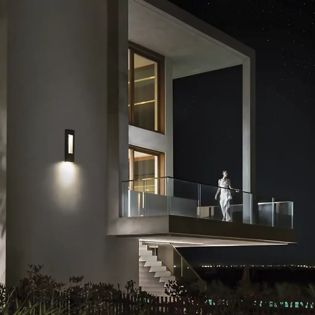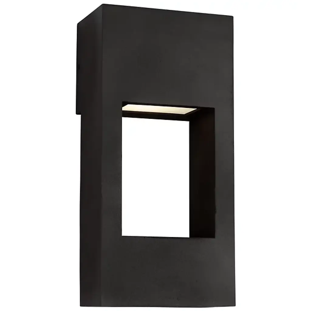 The massive size of the Atlantis Outdoor Extra Large Wall Sconce by Hinkley Lighting gives a strong contemporary impression. Its empty section not only showcases an artistic use of negative space, but also houses 1 of 3 light sources that shine directly down through an etched glass lens. The remaining 2 light sources are located at the base, behind another etched glass lens, and generate a similar downward spill.