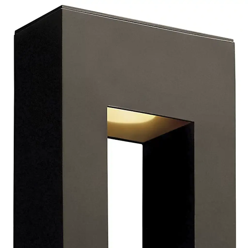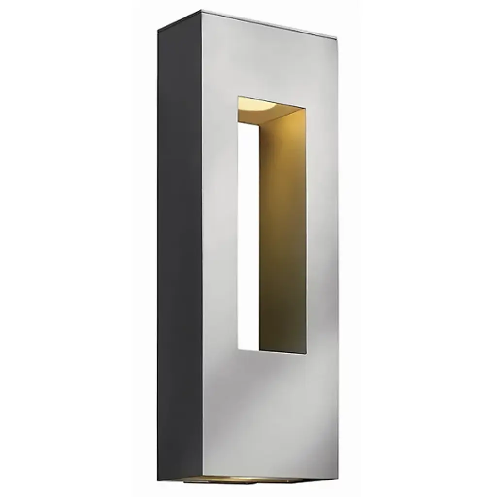 What allows the Atlantis Outdoor Wall Sconce by Hinkley to blend in seamlessly with its application space is its slim and discrete profile that takes heavy influences from geometry and symmetry. The fixture is formed into an elongated rectangular body made out of extruded aluminum, which allows the internal lamping and the etched glass lens to establish warm, indirect lighting that in turn creates a warm and immersive environment. This wall sconce works best for exterior living spaces.