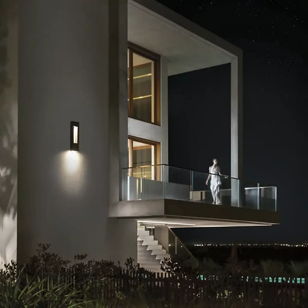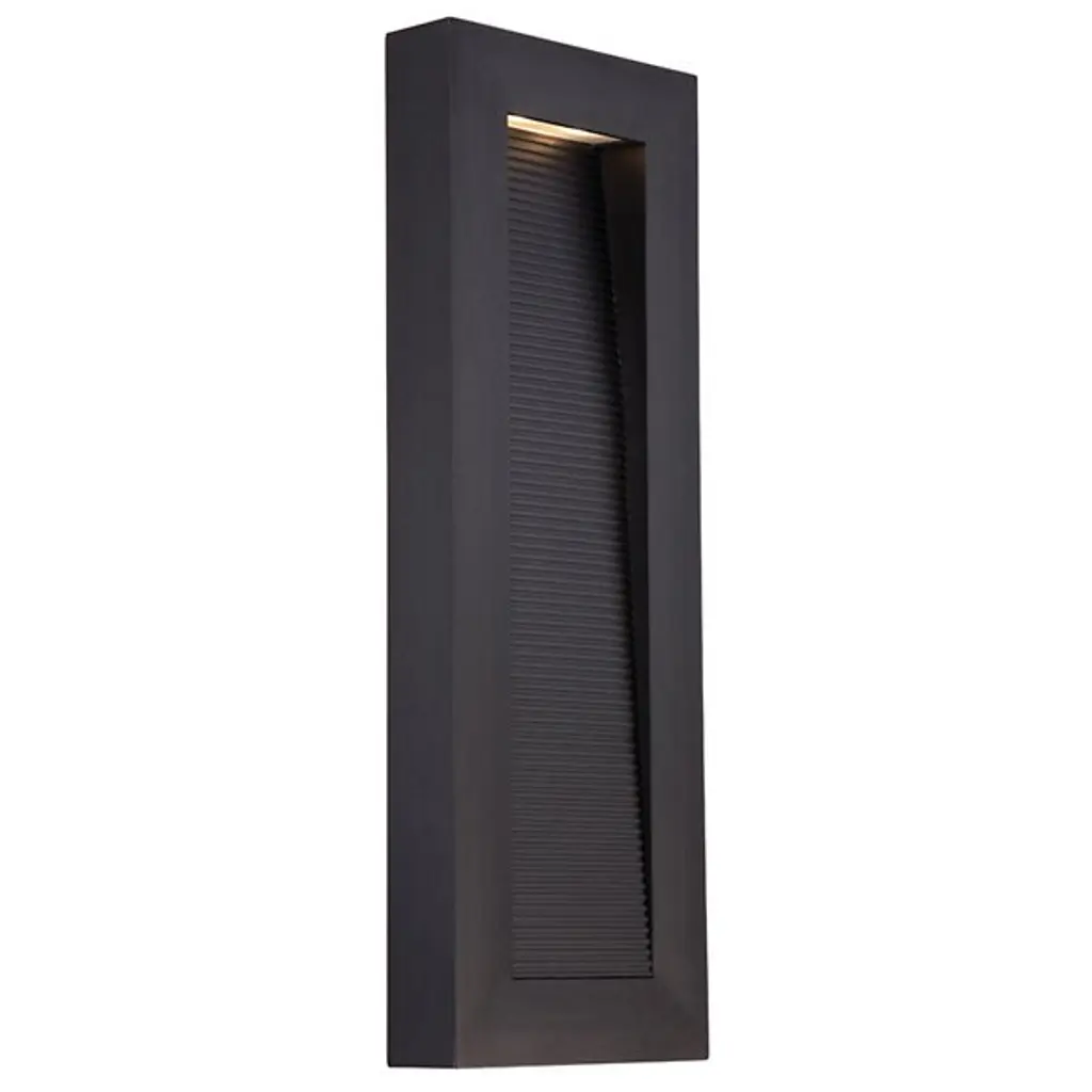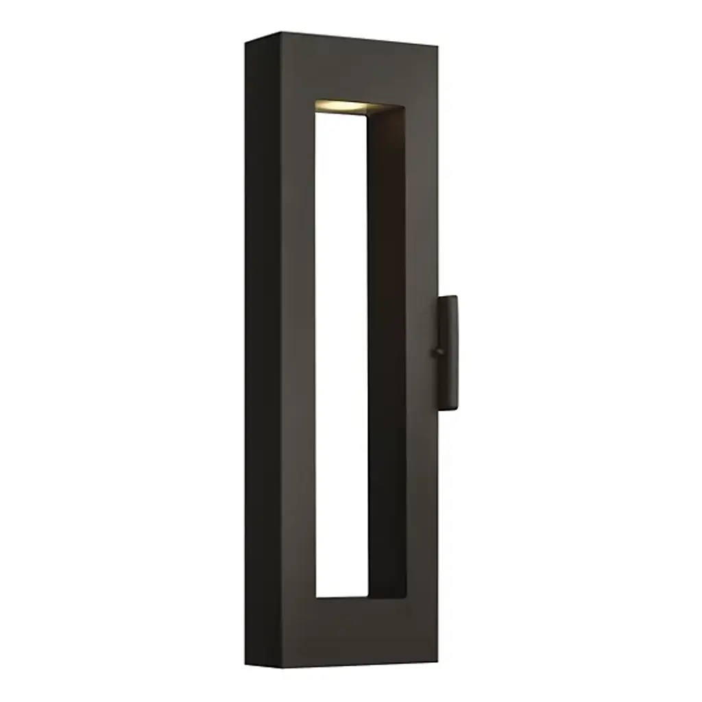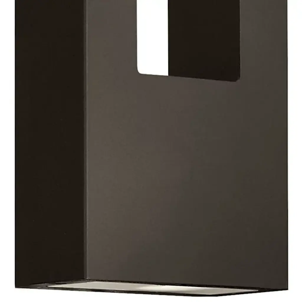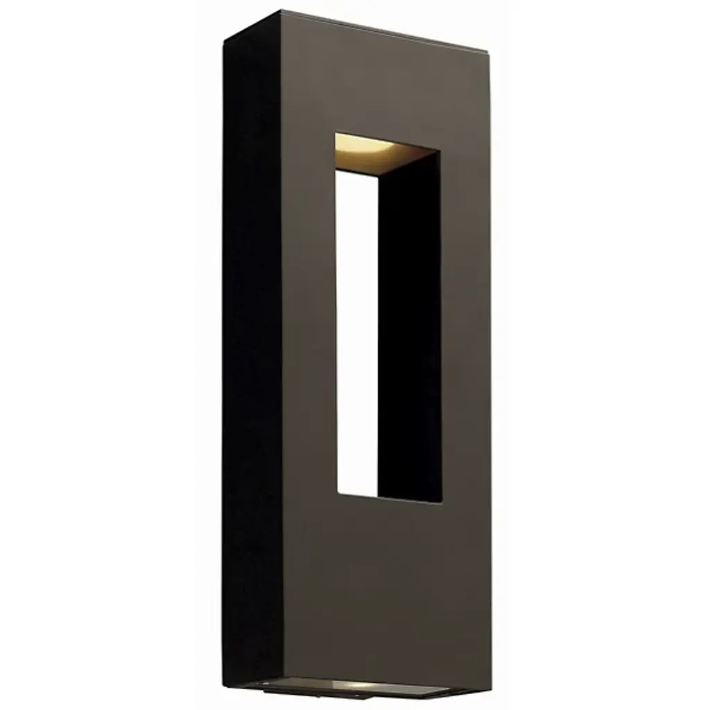 What allows the Atlantis Outdoor Wall Sconce by Hinkley to blend in seamlessly with its application space is its slim and discrete profile that takes heavy influences from geometry and symmetry. The fixture is formed into an elongated rectangular body made out of extruded aluminum, which allows the internal lamping and the etched glass lens to establish warm, indirect lighting that in turn creates a warm and immersive environment. This wall sconce works best for exterior living spaces.