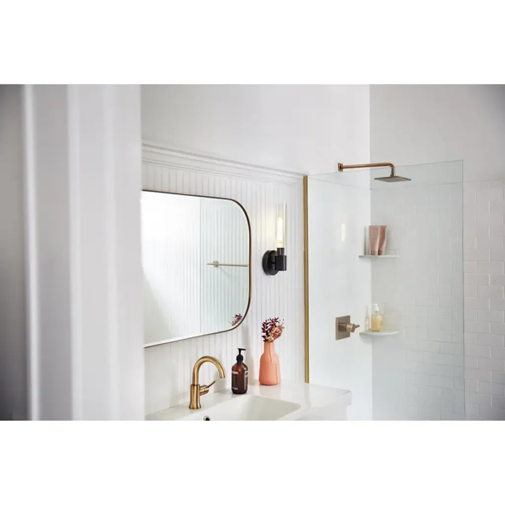 Your wall will fall in love with Atwells’s sleek, streamlined silhouette. Choose between single or double cylindrical style clear glass sconces to customize any space and flex your design skills by choosing from three versatile finishes: matte Black, crisp Chrome or luxe Lacquered Brass. Perfect for the bathroom and beyond, Atwells sets a new standard for multipurpose wall lighting. Pro tip: T10 bulbs are required but go with the wattage that wins you over.