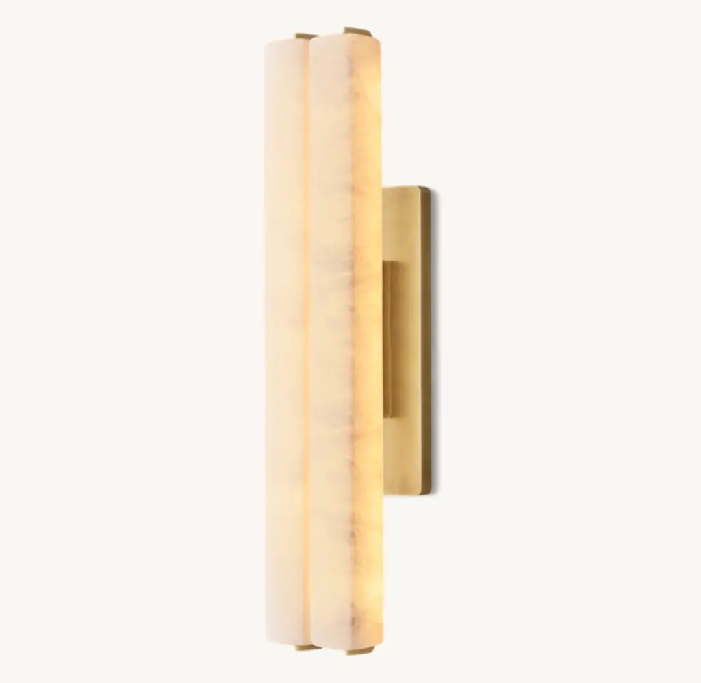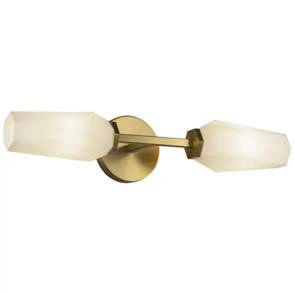 Capturing the spirit of 1960s Italian minimalism, Audubon features two prisms of alabaster on a solid brass frame. At once striking and restrained, the collection by Joseph Jeup evokes the warmth of candlelight with elongated LEDs that shed beautiful light through the translucent stone.ALSO AVAILABLE IN CRYSTAL SHOP THE ENTIRE COLLECTION