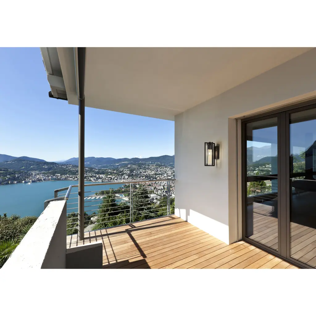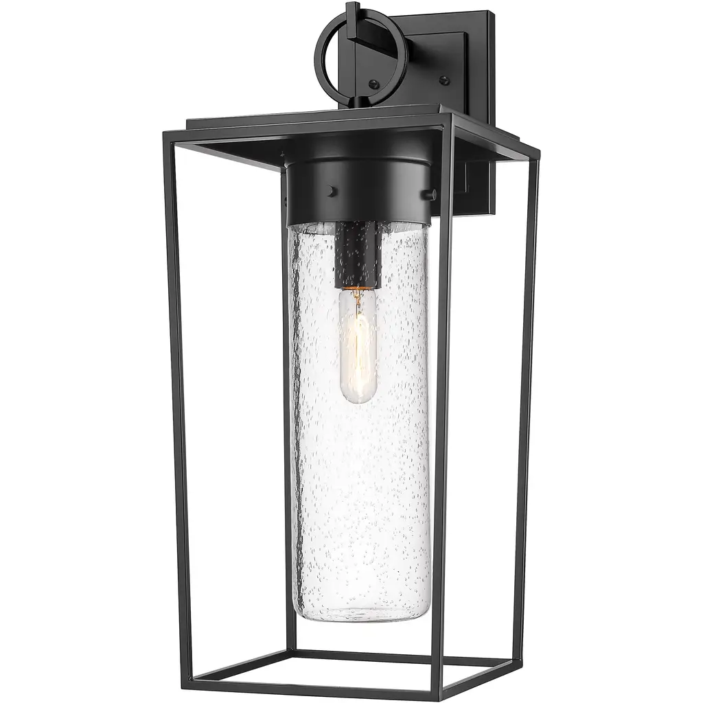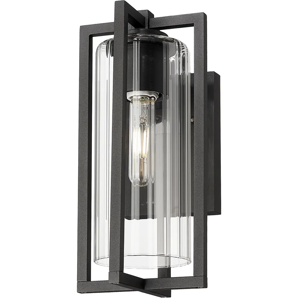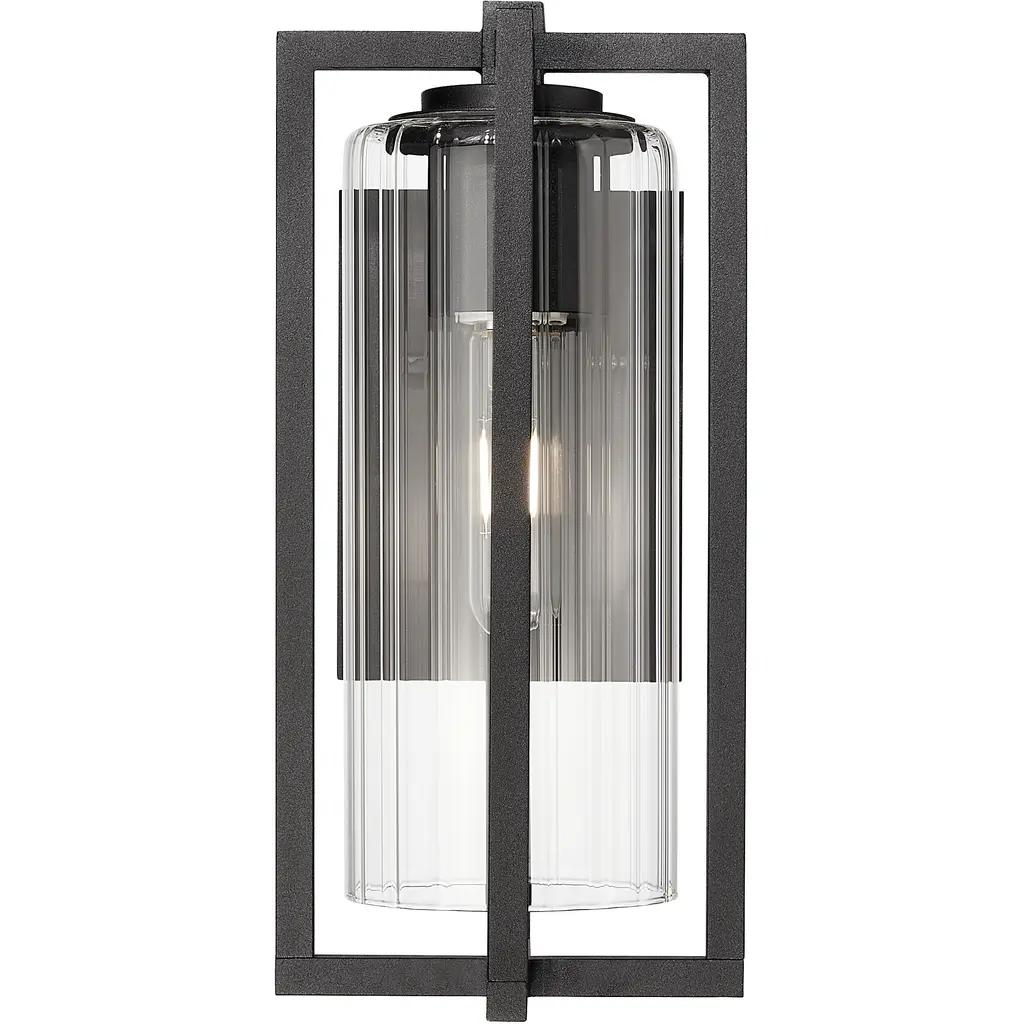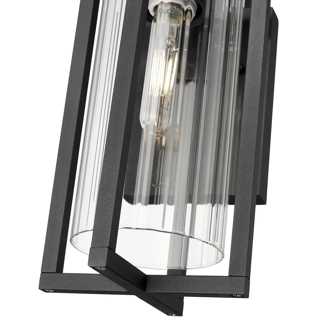 Exterior structures come to life with the elegant, crisp style of this one-light outdoor wall light. Contribute to a customized space design with a fixture featuring openwork aluminum framing in a sleek Coastal black paint finish. A cylinder shade made of clear ribbed glass adds a final touch.