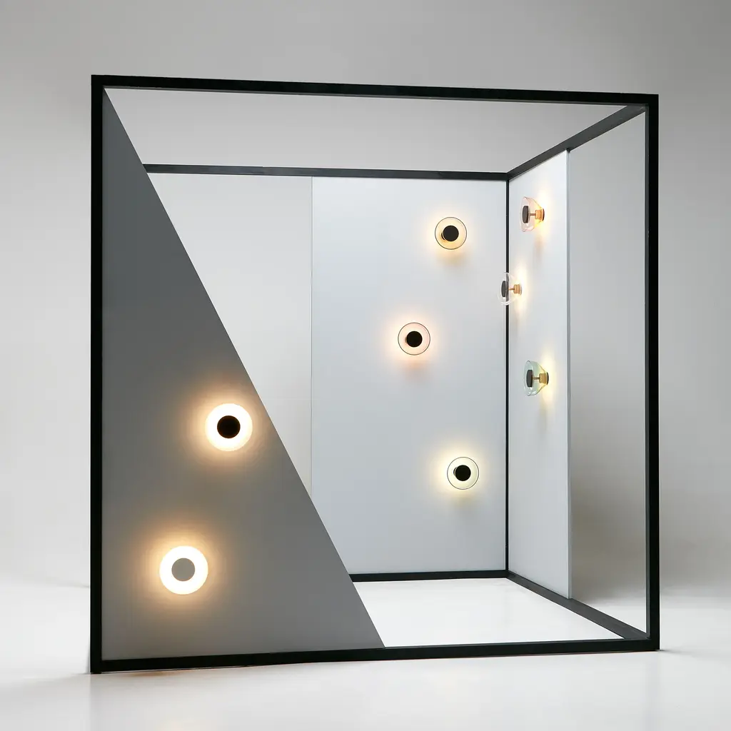 As the larger version of the series, Aura Plus shines even more glowing light on its surroundings. Inspired by the clarity of a simple glass table carafe, designer Joan Gaspar’s LED wall light showcases a wondrously oversized hand-blown glass shade wrapped around a lacquered aluminum disc. Hidden behind the disc, an integrated LED light creates a radiant halo while the shade emits a subtle overall wash of light.