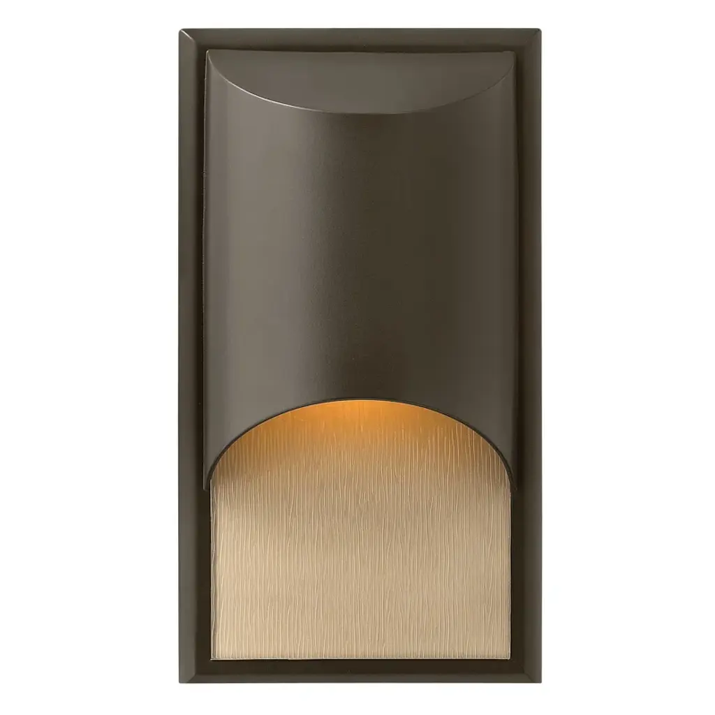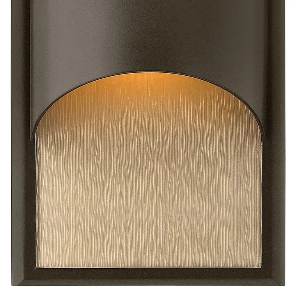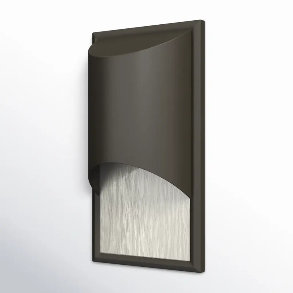A clean, modern design in sleek aluminum with clear, etched rain glass, this wall mount fixture would be an eye-catching addition inside or out. Its minimalist style complements contemporary facades and is available with integrated LED lighting or a 100-watt socket. The shade directs the light down against the rain glass panel, for a glowing, indirect lighting effect.