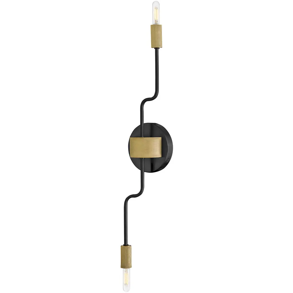 The Austen Wall Sconce by Lark features a sleek, exaggerated design that embodies a chic transitional silhouette, highlighted by knurled candle sleeves and stem details. Its appearance can be customized with adjustable top and bottom arms to perfectly complement your space. This sconce seamlessly blends modern sophistication with personalized features, ensuring both style and functionality for any room in your home, making it an ideal choice for enhancing your interior decor.