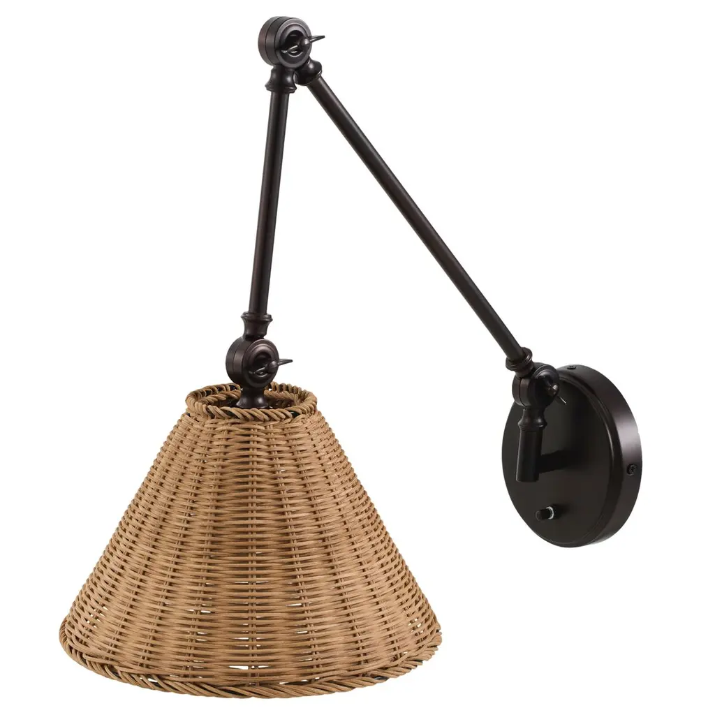 A marriage of sinuous lines and high texture, Averack brings an innate sense of drama to any space. With a tight, uniform weave, the conical rattan shade recalls the precision of Japanese basketry. Finished in Aged Brass, the large J-shaped arm allows for adjustability over a reading nook or bedside table.Due to the one-of-a-kind nature of the medium, exact colors and patterns may vary slightly from the image shown.