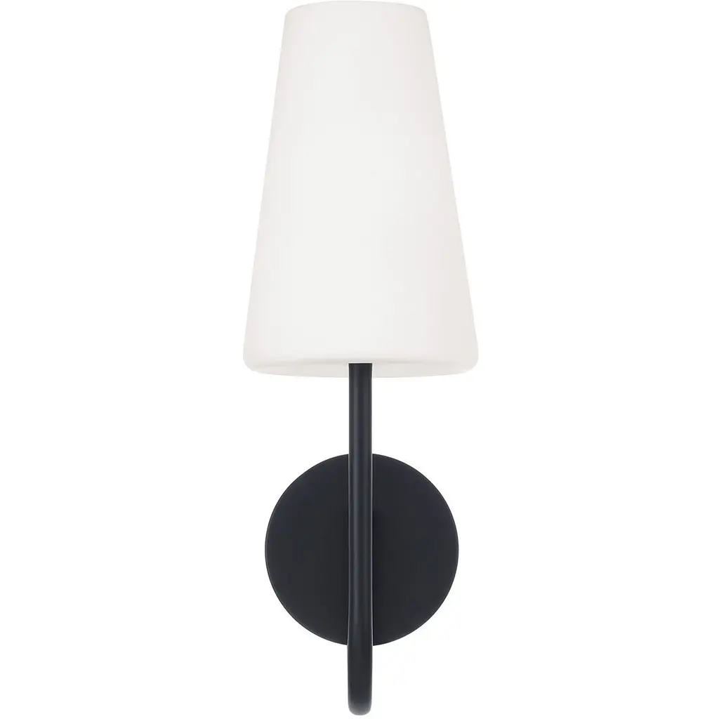 Classic curves and grand scale create the Averitt Sconce. The elongated Soft White glass tapered shade complements the sleek arm for elegant transitional style, while the Matte Black finish creates sophisticated contrast.