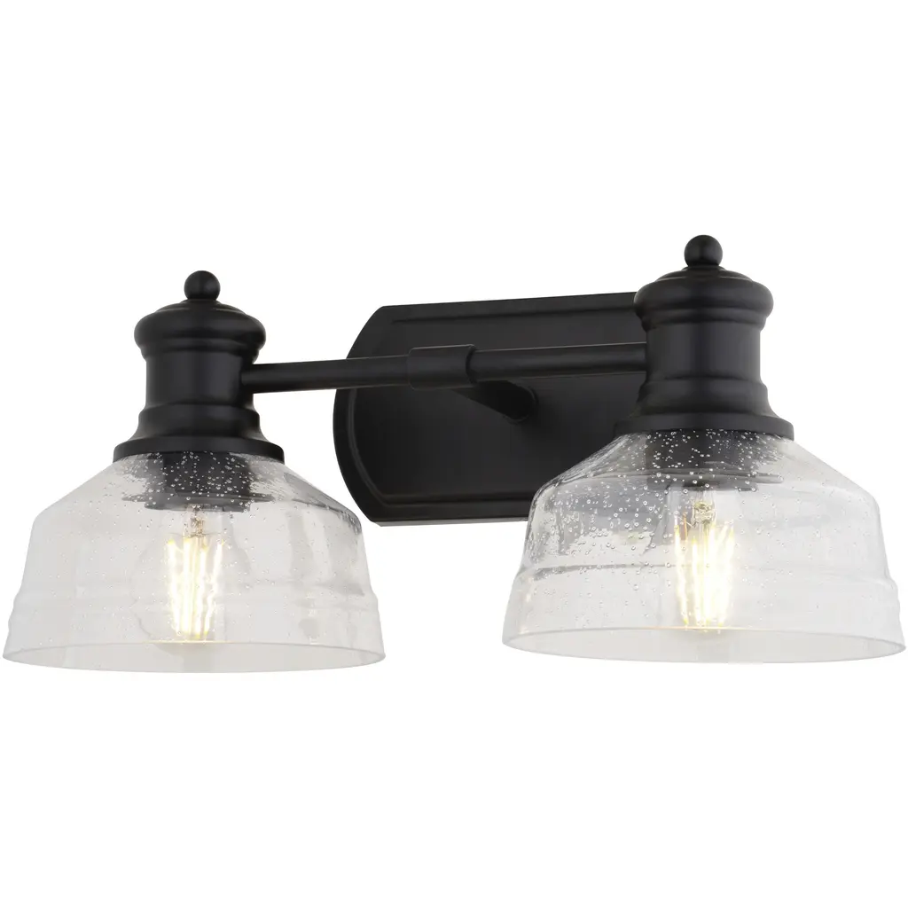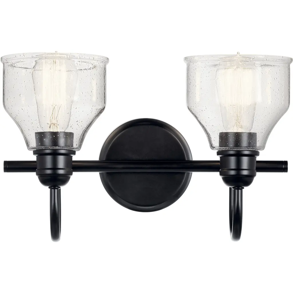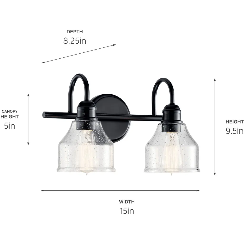 Avery 15 Inch 2 Light Vanity Light with Clear Seeded Glass in Black