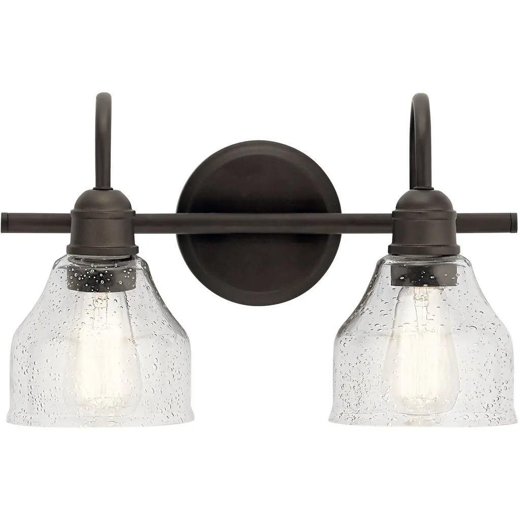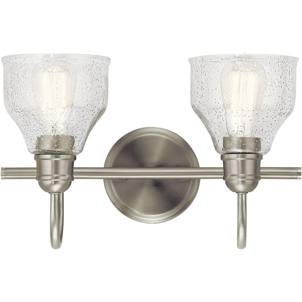 Create a masterpiece with this 2 light bath light from the Avery collection. In a Brushed Nickel finish with Clear Seeded glass.