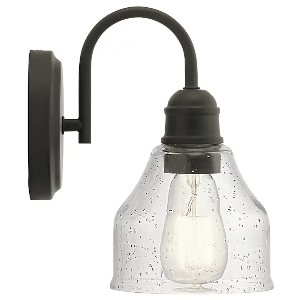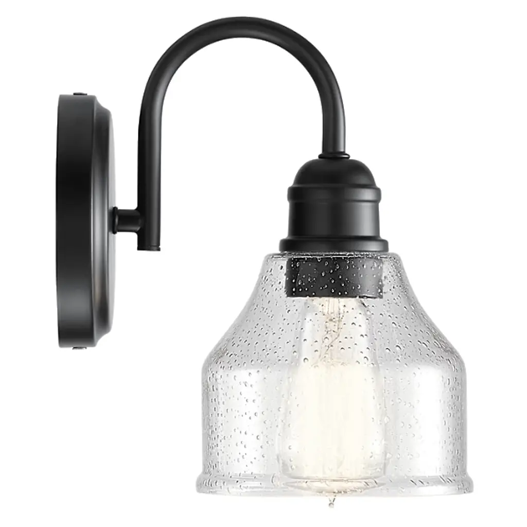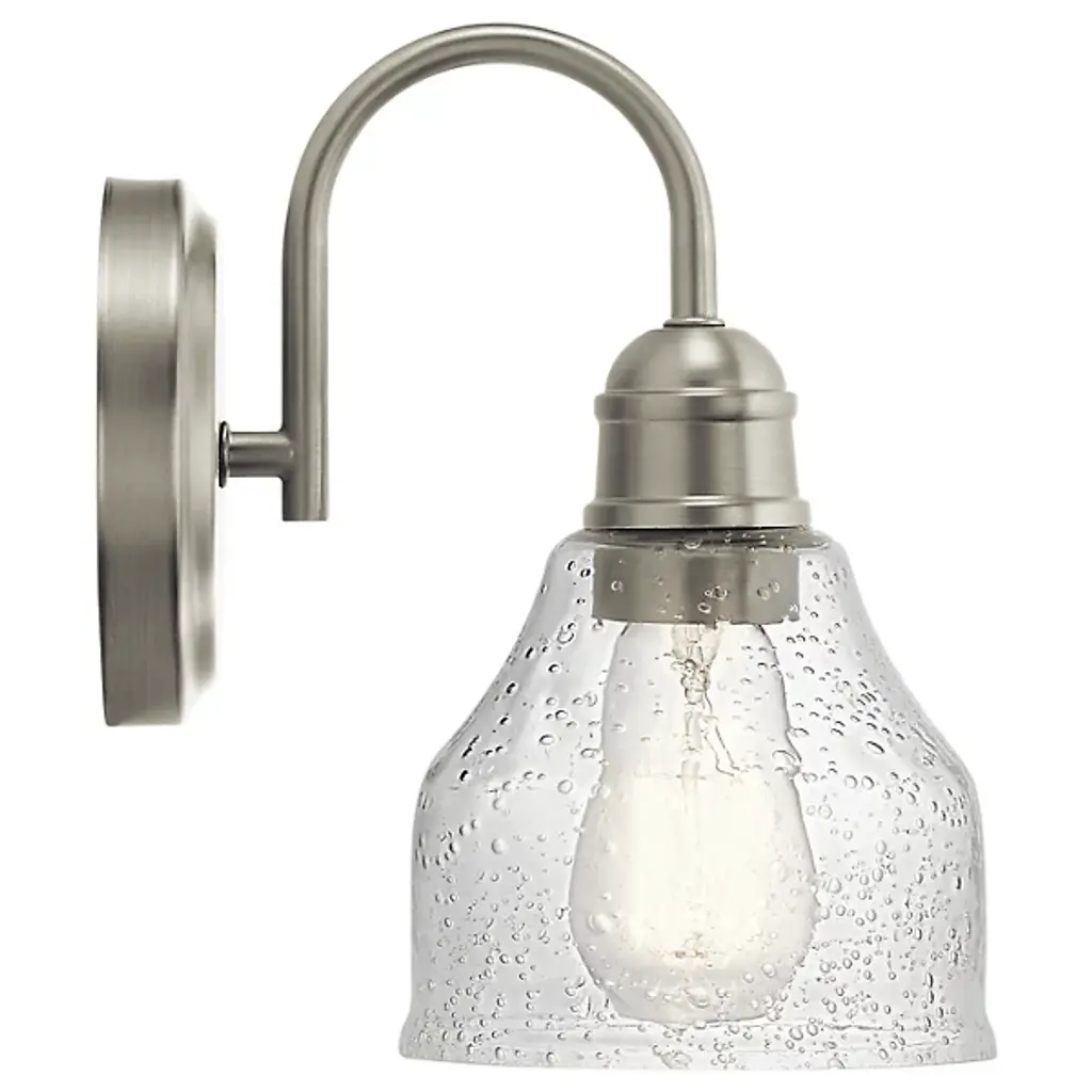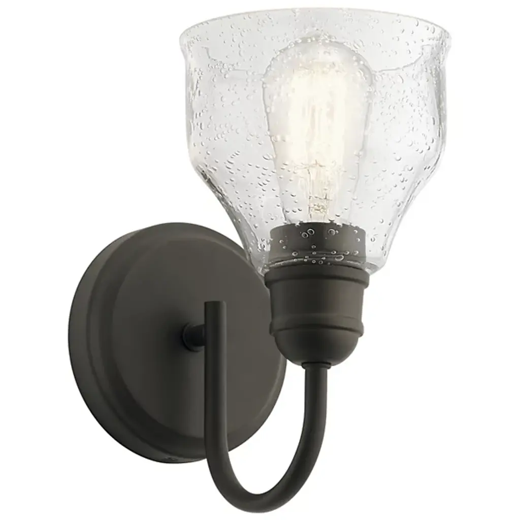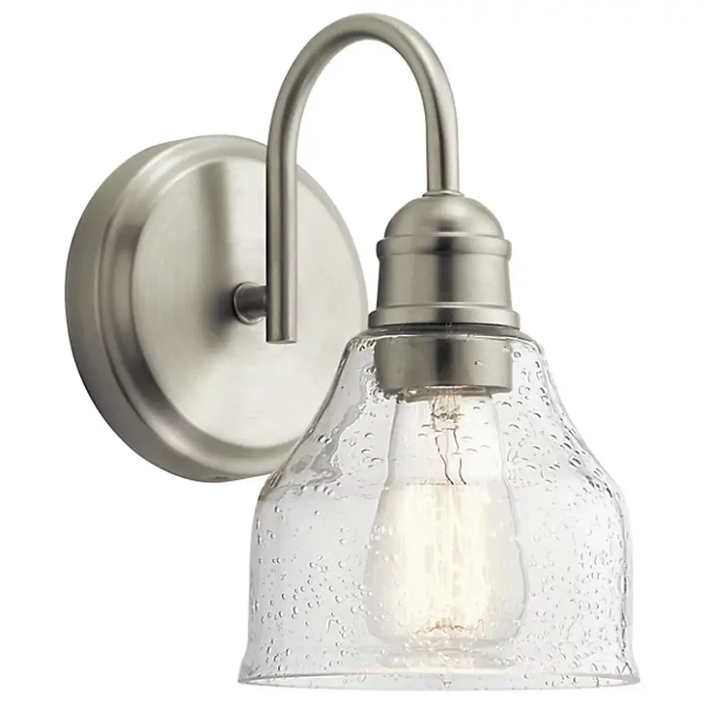A deluge of simple sophistication. Straightforward design makes the Avery Wall Sconce by Kichler highly versatile, ready to contribute to décor stories from vintage to post-modern and everywhere in between. This sconce features trendy seeded glass, creating an aquatic motif that looks handsome in the bathroom or kitchen – or any other room in your home, for that matter!