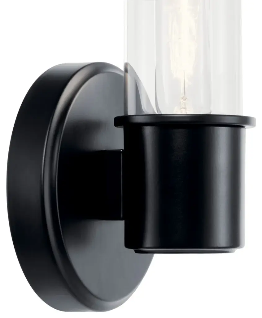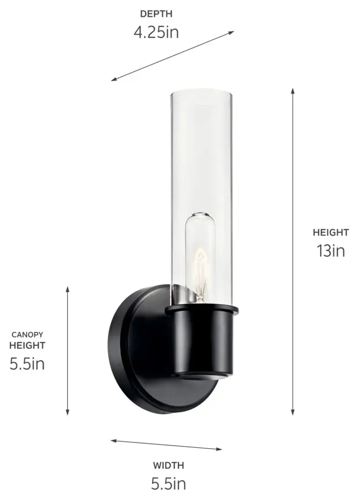 Aviv 13" 1 Light Wall Sconce With Clear Glass, Black