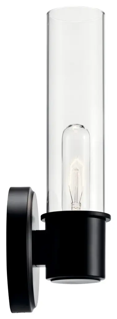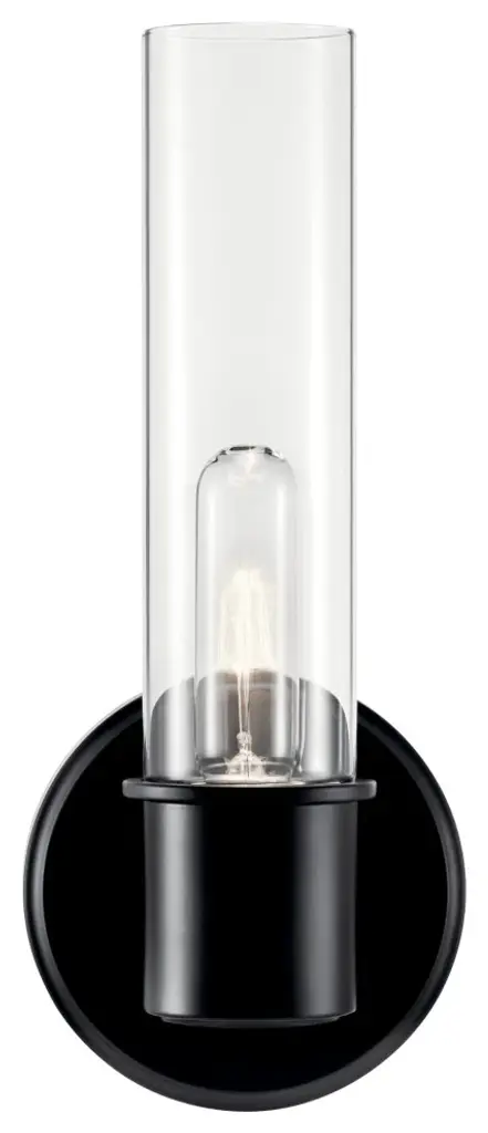 With its cylindrical clear glass shade, the Aviv wall sconce conveys a sleek style. A stunning black finish makes Aviv a versatile and timeless accent. Remove its glass for easy cleaning.