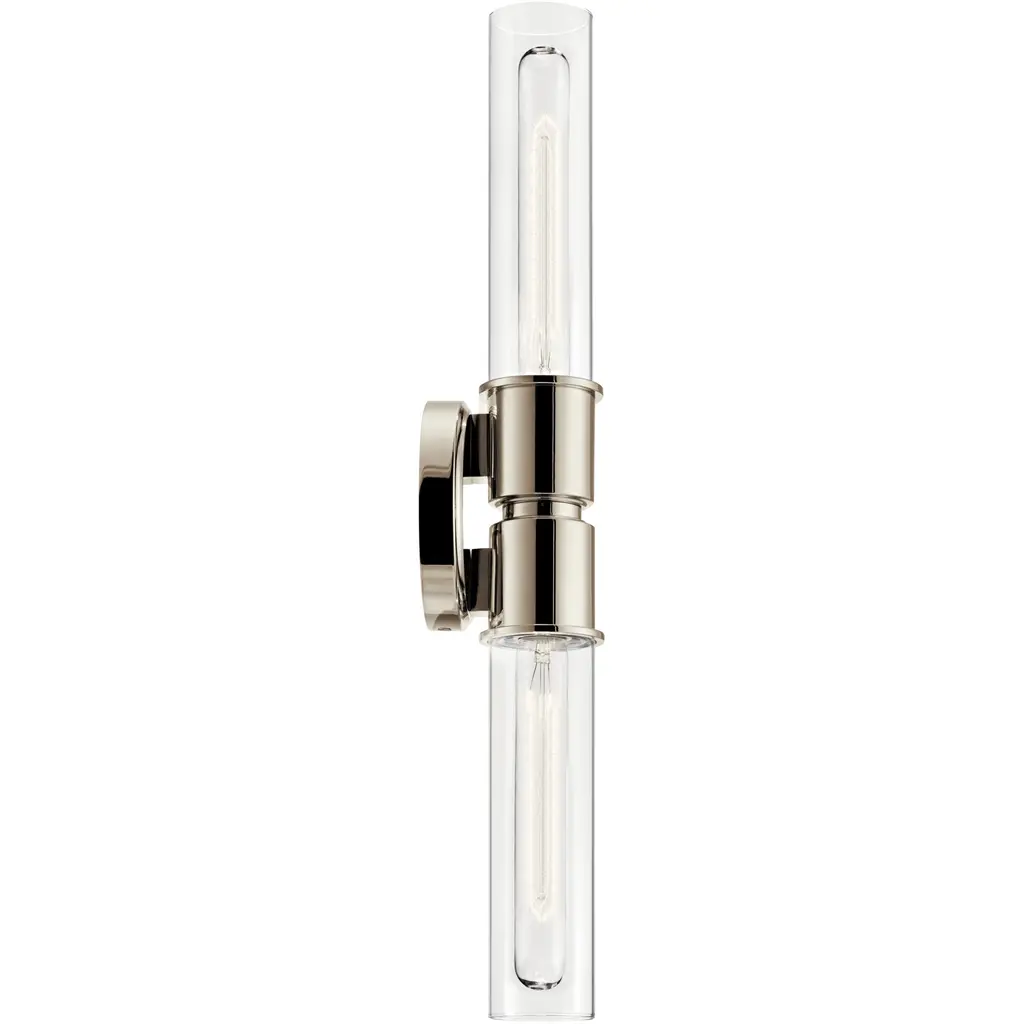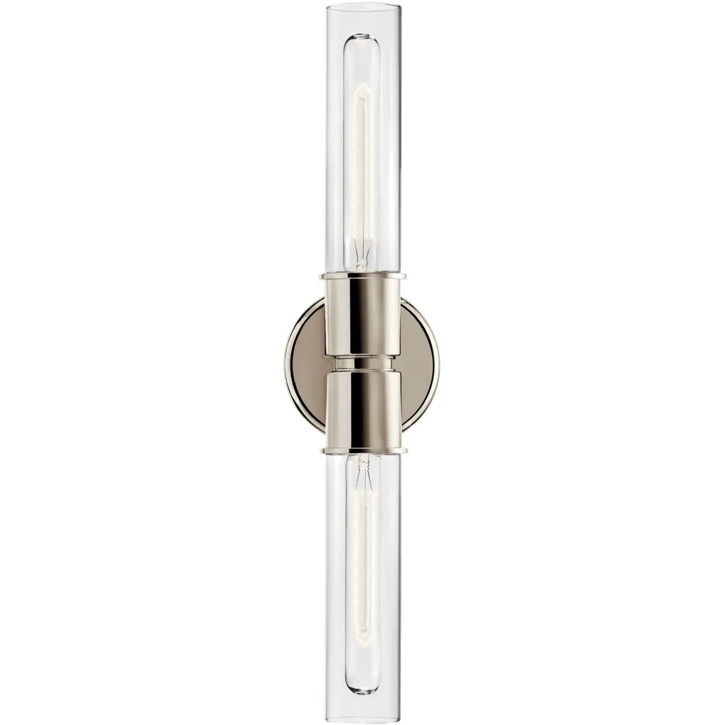 Aviv 24 Inch 2 Light Wall Sconce with Clear Glass in Polished Nickel