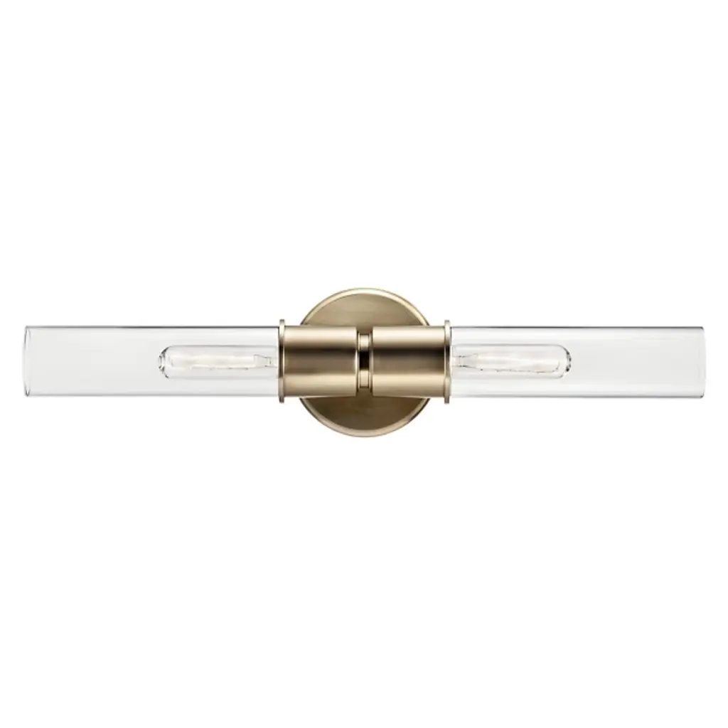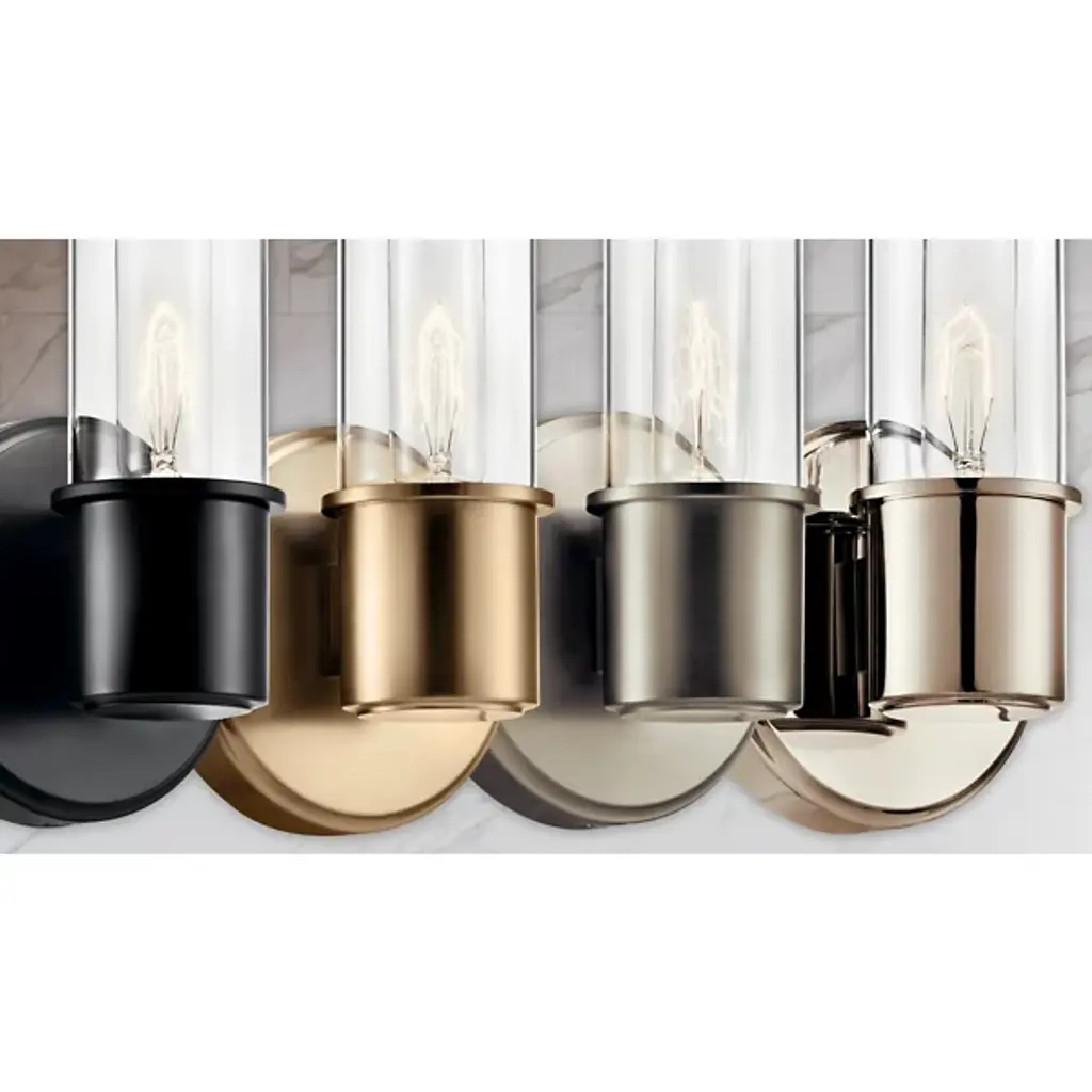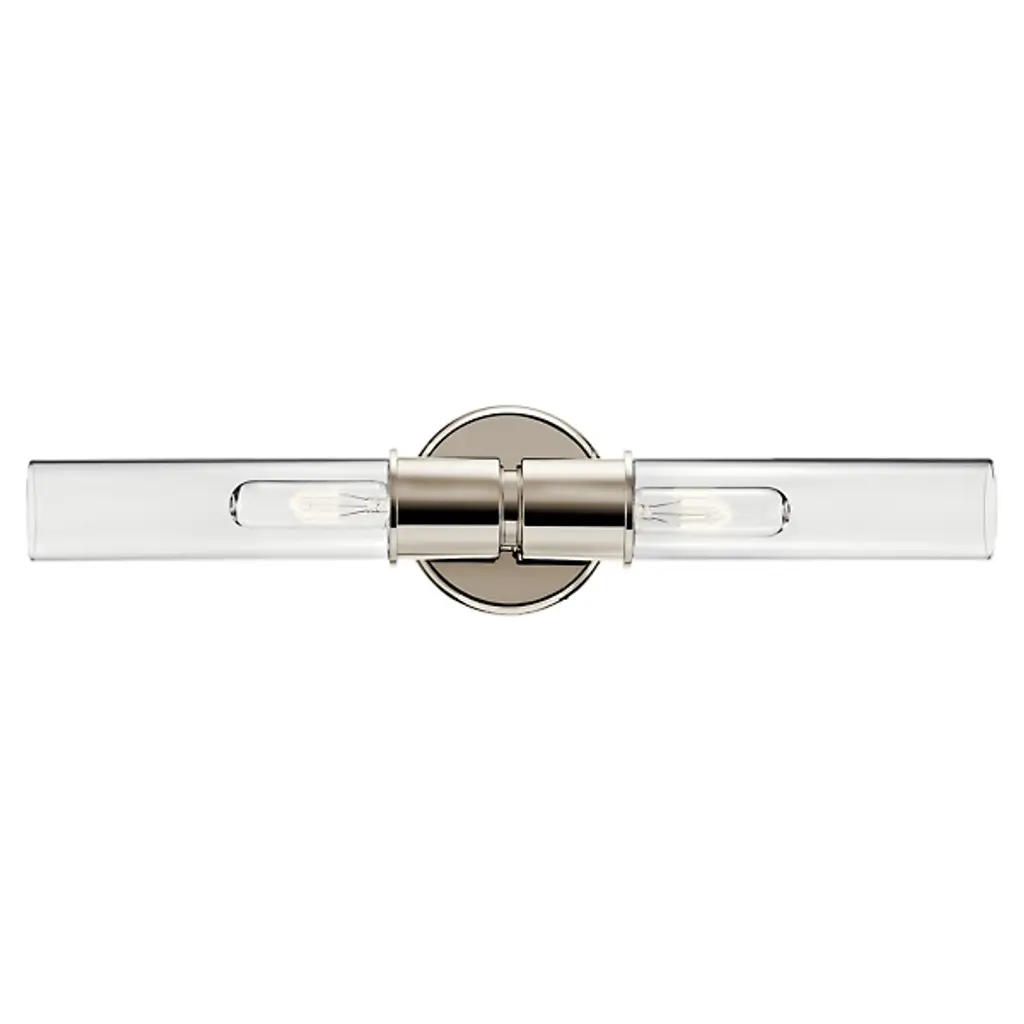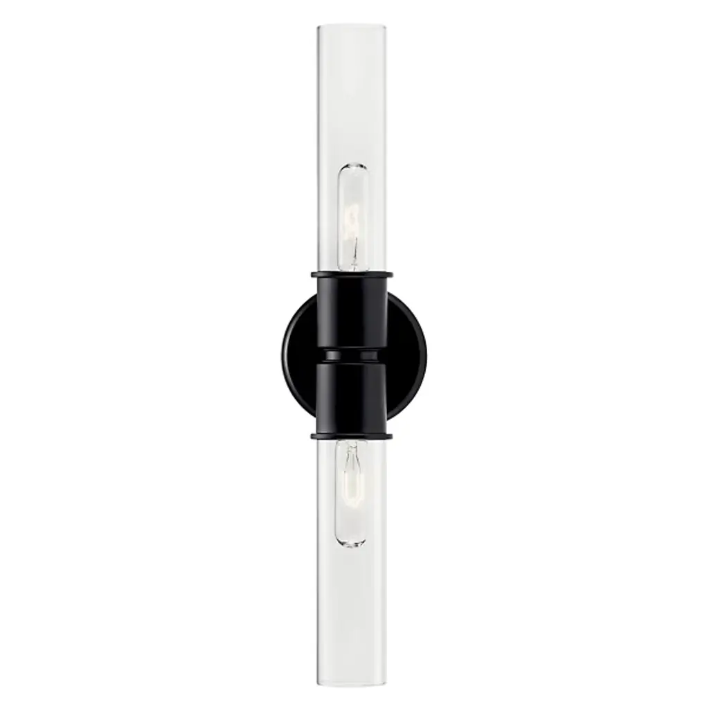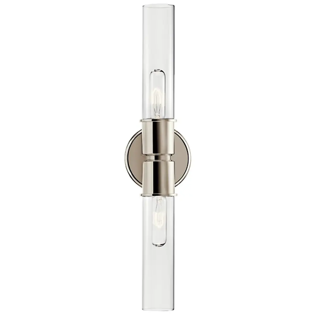 The Aviv 2 Light Wall Sconce from Kichler combines functionality with contemporary design. It is crafted from high-quality steel. Aviv features 2 cylindrically shaped glass shades, oriented to face opposite directions. This distinctive form allows for an intriguing display play of light, creating a captivating ambiance. Your wall sconce can be mounted either vertically or horizontally. Illuminate your surroundings with LEDs housed within each shade and adjust the brightness level using a separately sold ELV dimmer.