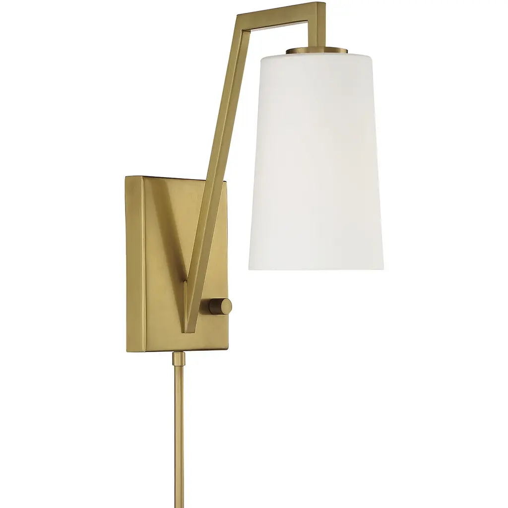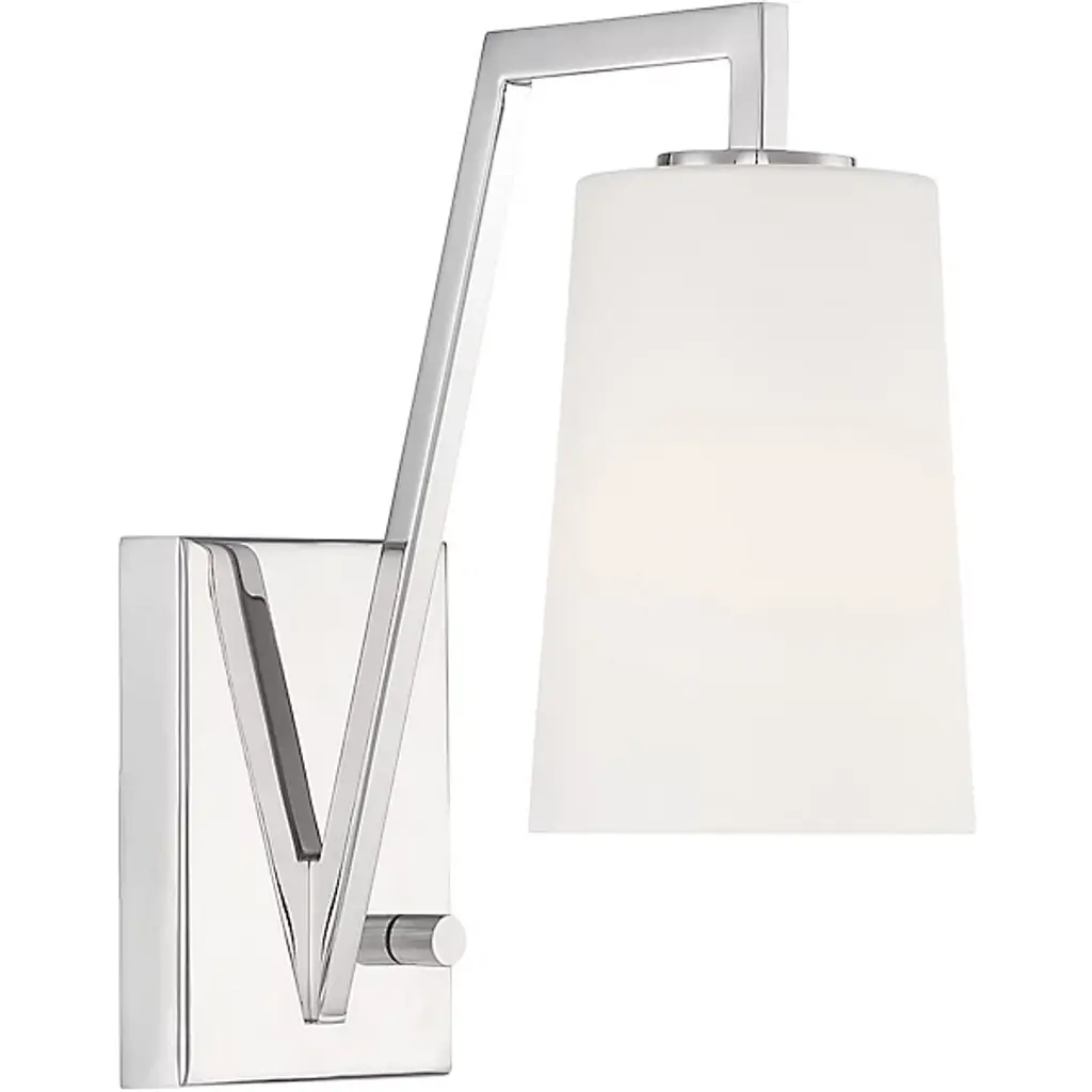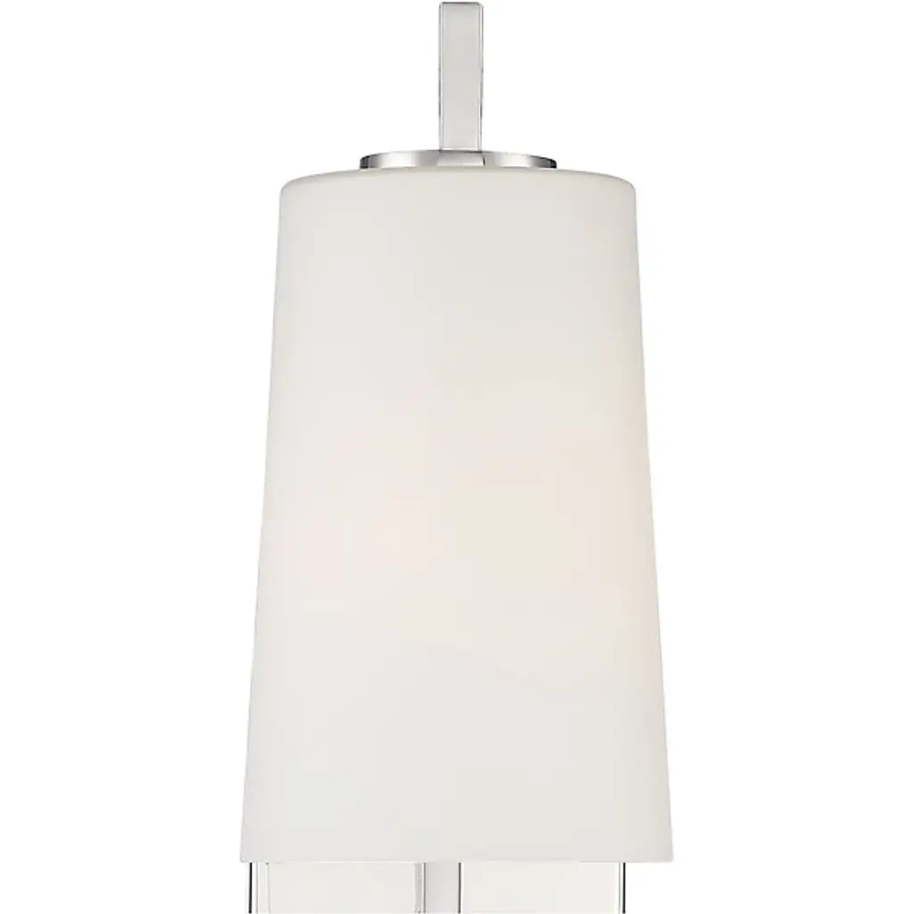 The Avon Wall Sconce by Crystorama is an elegant, modern addition to spaces. A sleek, rectangular backplate anchors this design, supporting a structured arm with crisp bends in its form. At the end of this arm, a glass shade adds a classic touch to the look of this wall sconce, and an easy-to-access switch on the backplate makes dimming the direct light it provides simple. A beautiful finish dresses up the metal elements of this handsome design, offering its defined build a lovely touch.