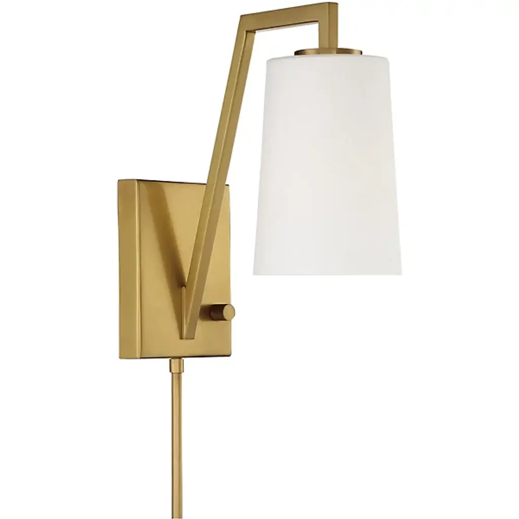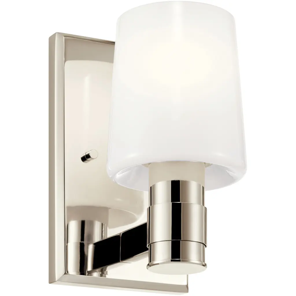 The Avon Wall Sconce by Crystorama is an elegant, modern addition to spaces. A sleek, rectangular backplate anchors this design, supporting a structured arm with crisp bends in its form. At the end of this arm, a glass shade adds a classic touch to the look of this wall sconce, and an easy-to-access switch on the backplate makes dimming the direct light it provides simple. A beautiful finish dresses up the metal elements of this handsome design, offering its defined build a lovely touch.