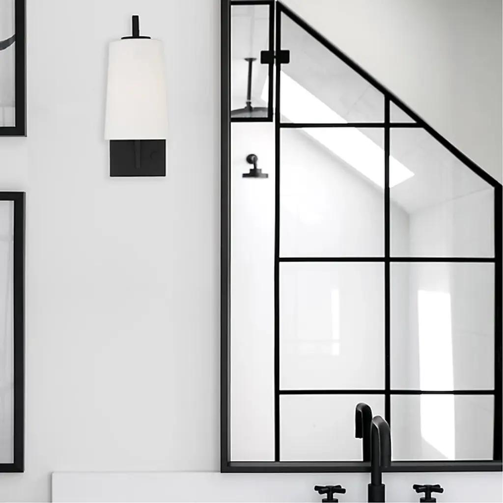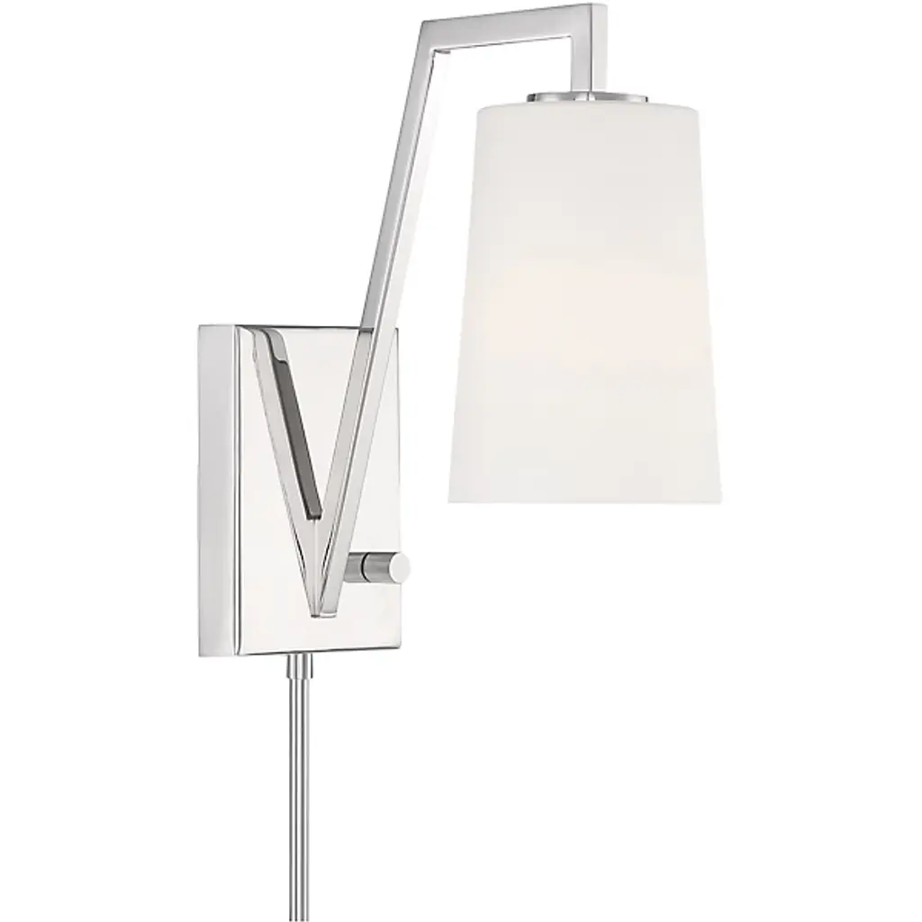 The Avon Wall Sconce by Crystorama is an elegant, modern addition to spaces. A sleek, rectangular backplate anchors this design, supporting a structured arm with crisp bends in its form. At the end of this arm, a glass shade adds a classic touch to the look of this wall sconce, and an easy-to-access switch on the backplate makes dimming the direct light it provides simple. A beautiful finish dresses up the metal elements of this handsome design, offering its defined build a lovely touch.
