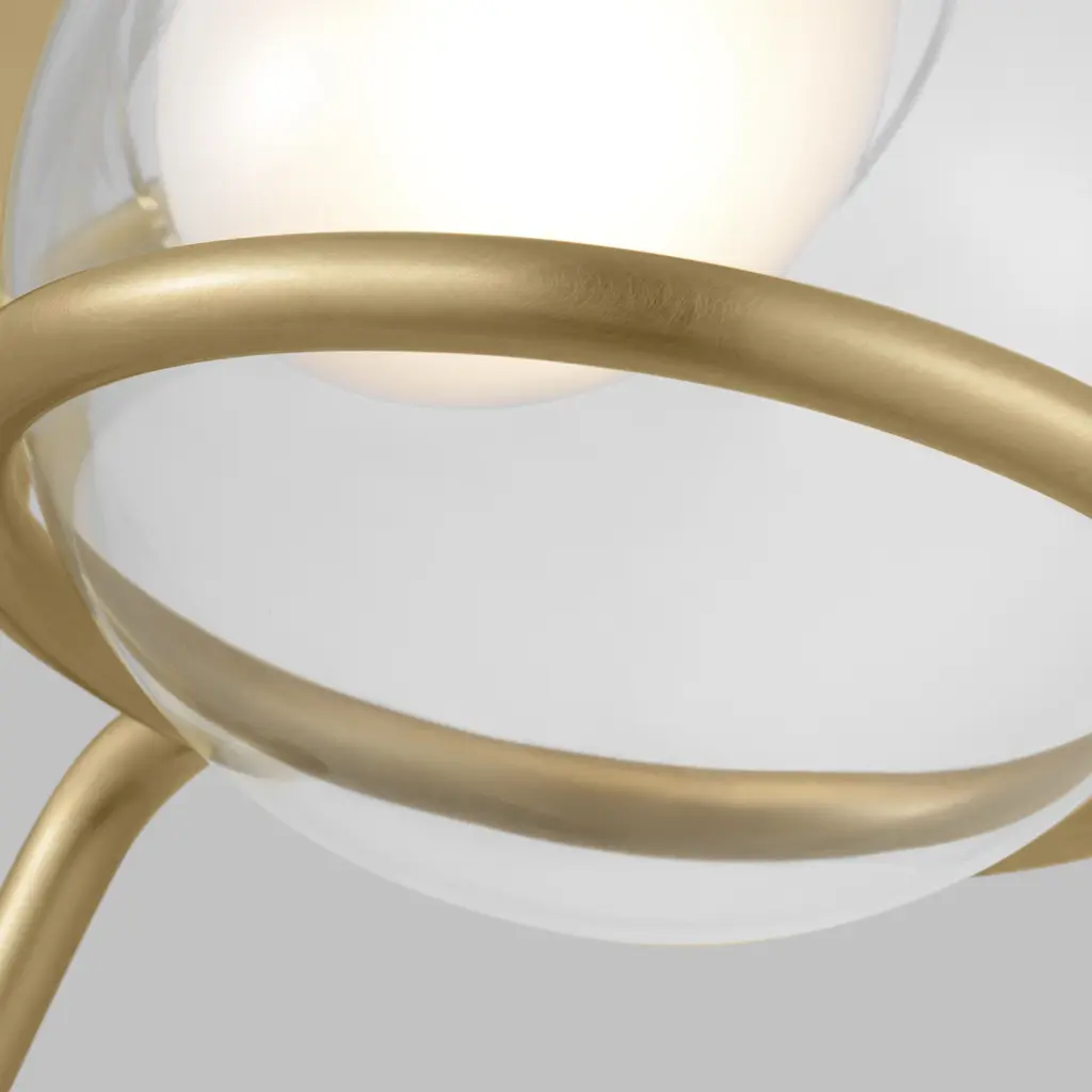 The Crosby Medium Sconce by AvroKO for Visual Comfort blends the radiance of 1970's Italian flair, with a striking yet simple design. Distinctive to its musical delicacy, the glossy black metal armature yields to an elegant brass “harp” holding a glass globe dispersing light fluidly and illuminating any space with perfection. Includes 7.7 watt, 537 delivered lumens, 2700K LED module. 120V dimmable with most LED compatible ELV and TRIAC dimmers. 277V compatible with 0-10V dimmers. Mounts vertically only. Downlight only.