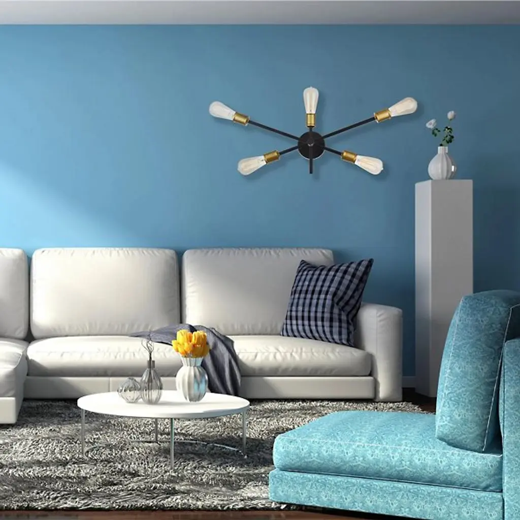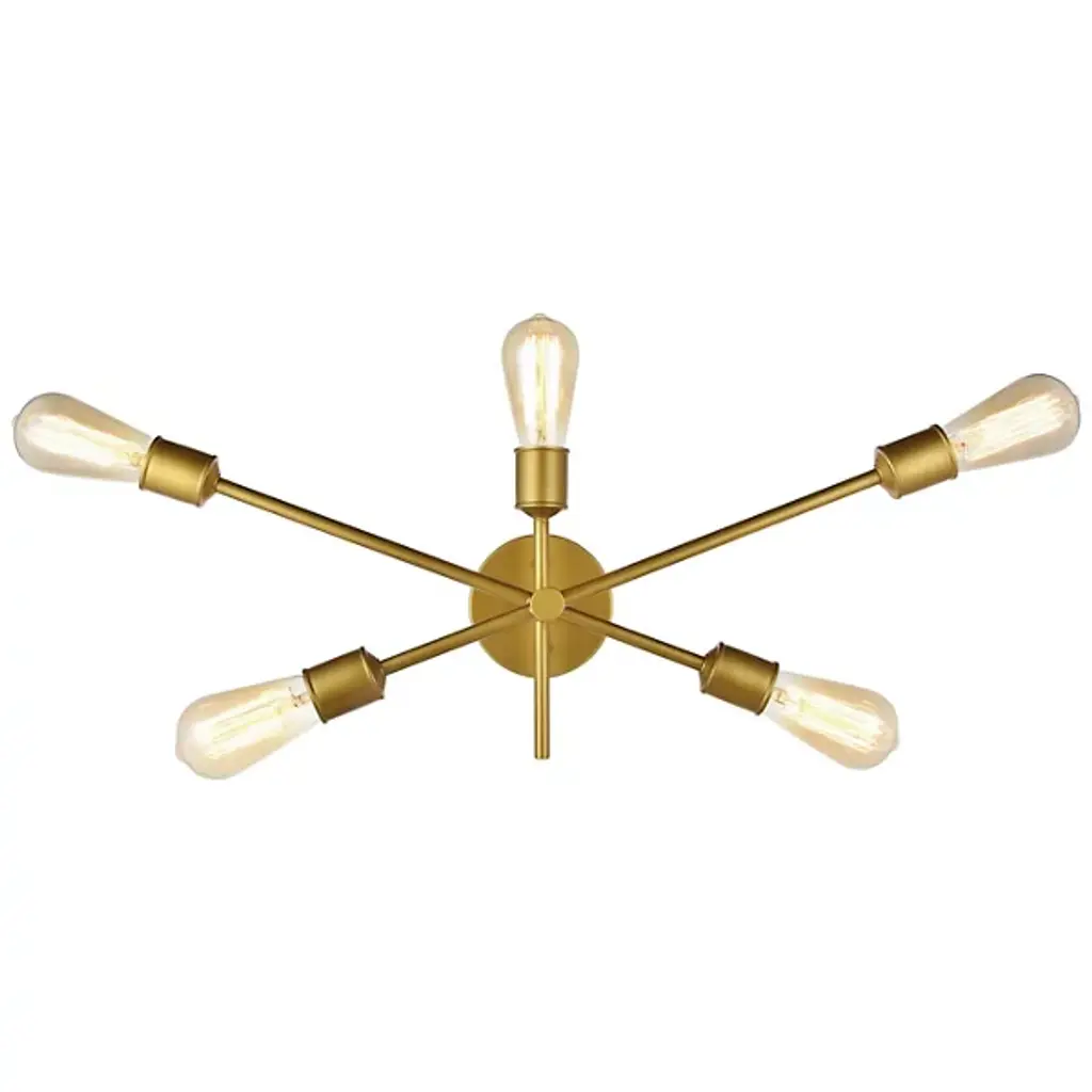 The Axel Wall Sconce from Elegant Lighting features five arms extending at different points from a central hub, each culminating in an exposed socket. Its bare-bones aesthetic celebrates the fundamental elements of lighting design, stripping away unnecessary ornamentation. The Axel Wall Sconce excels in creating dramatic wall-washing effects or providing focused task lighting. It's particularly well-suited for framing mirrors, highlighting artwork, or adding visual interest to hallways.