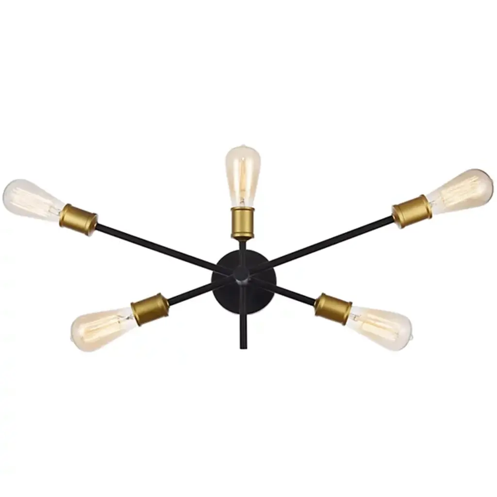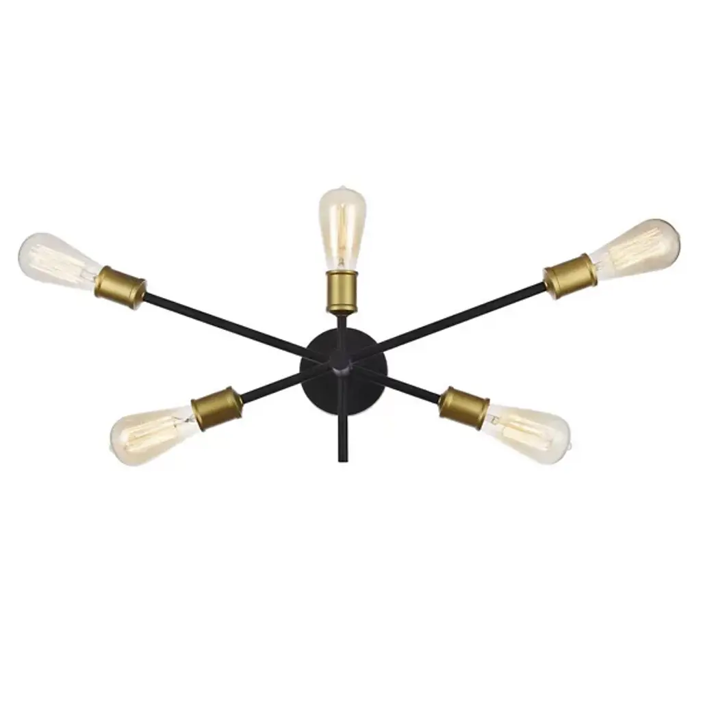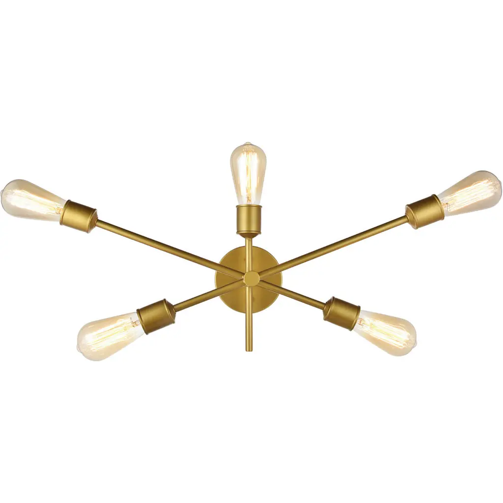 The Axel Wall Sconce from Elegant Lighting features five arms extending at different points from a central hub, each culminating in an exposed socket. Its bare-bones aesthetic celebrates the fundamental elements of lighting design, stripping away unnecessary ornamentation. The Axel Wall Sconce excels in creating dramatic wall-washing effects or providing focused task lighting. It's particularly well-suited for framing mirrors, highlighting artwork, or adding visual interest to hallways.