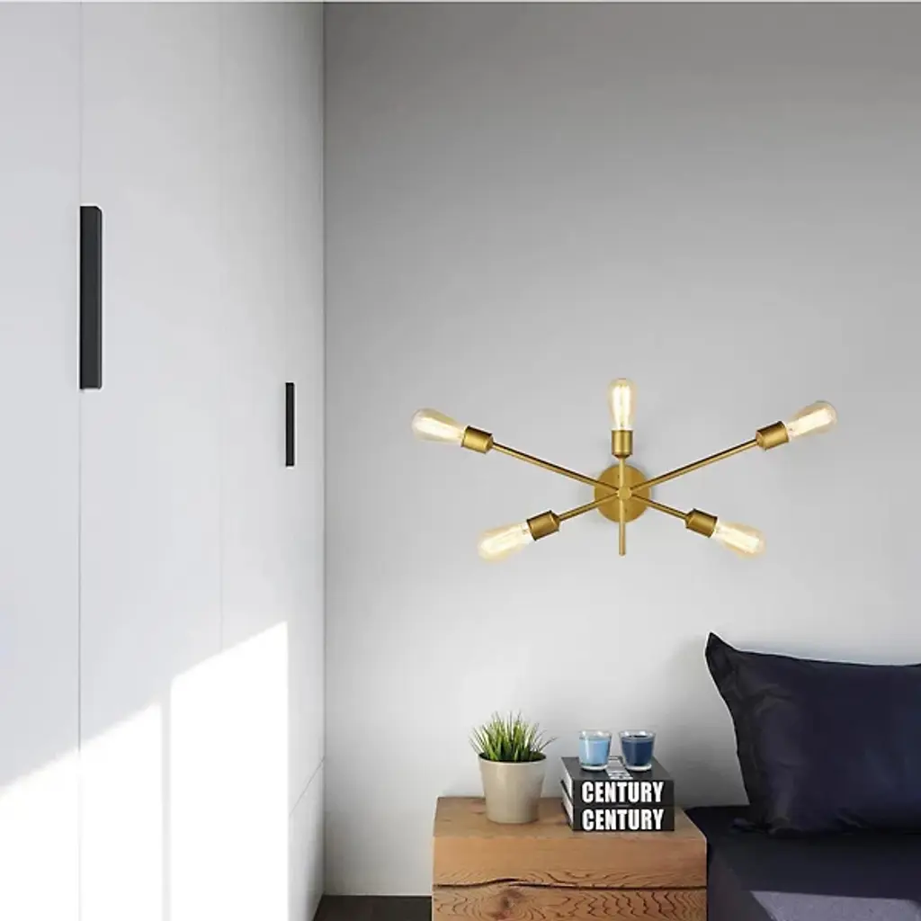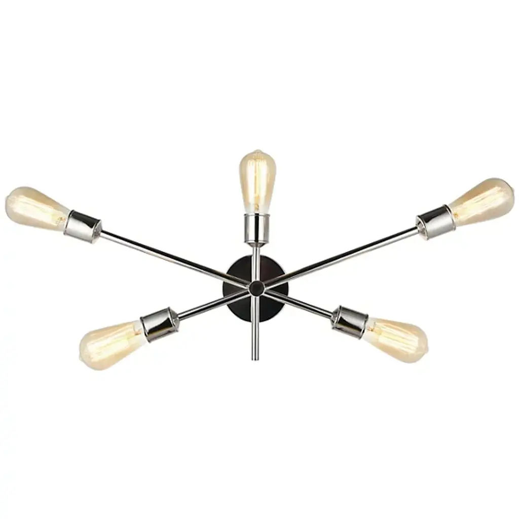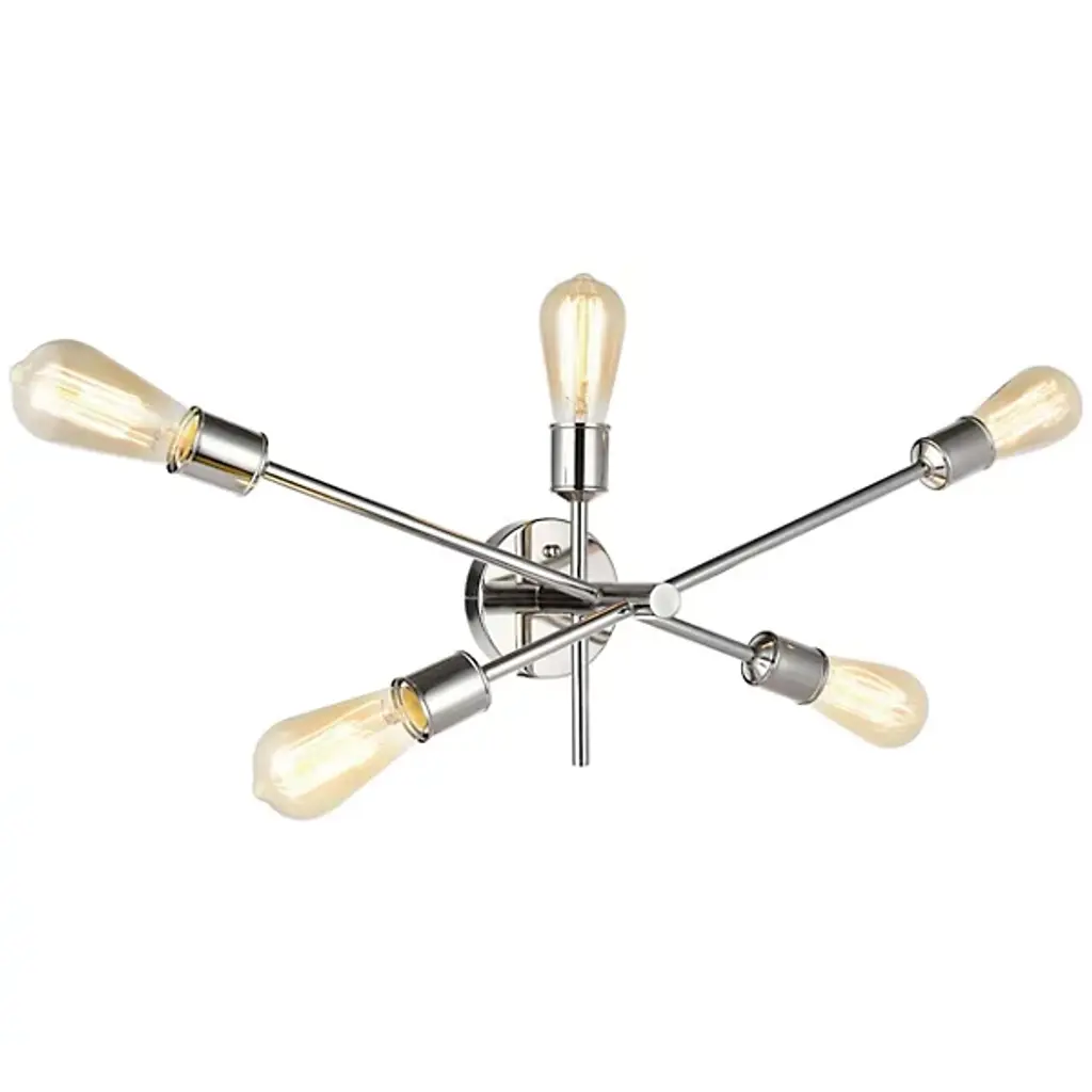 The Axel Wall Sconce from Elegant Lighting features five arms extending at different points from a central hub, each culminating in an exposed socket. Its bare-bones aesthetic celebrates the fundamental elements of lighting design, stripping away unnecessary ornamentation. The Axel Wall Sconce excels in creating dramatic wall-washing effects or providing focused task lighting. It's particularly well-suited for framing mirrors, highlighting artwork, or adding visual interest to hallways.