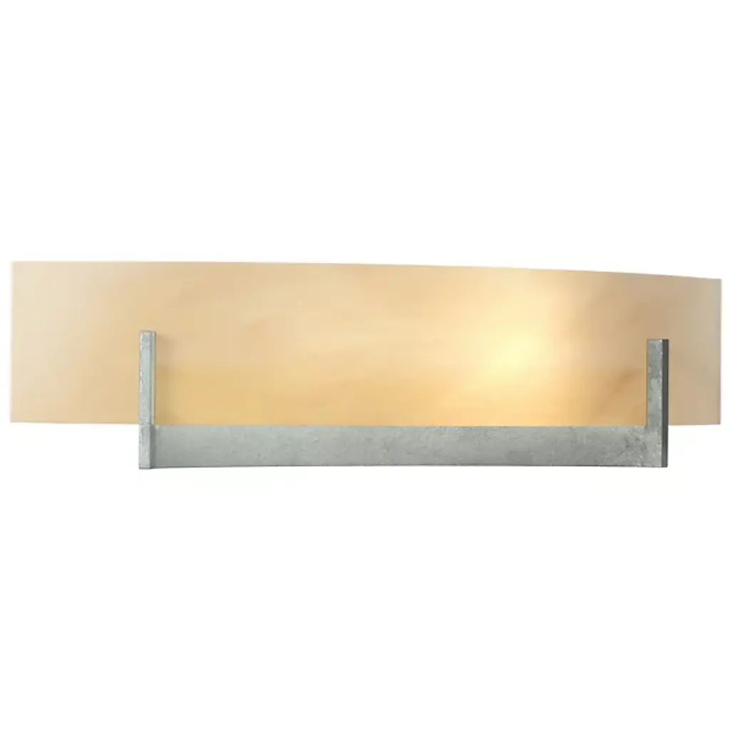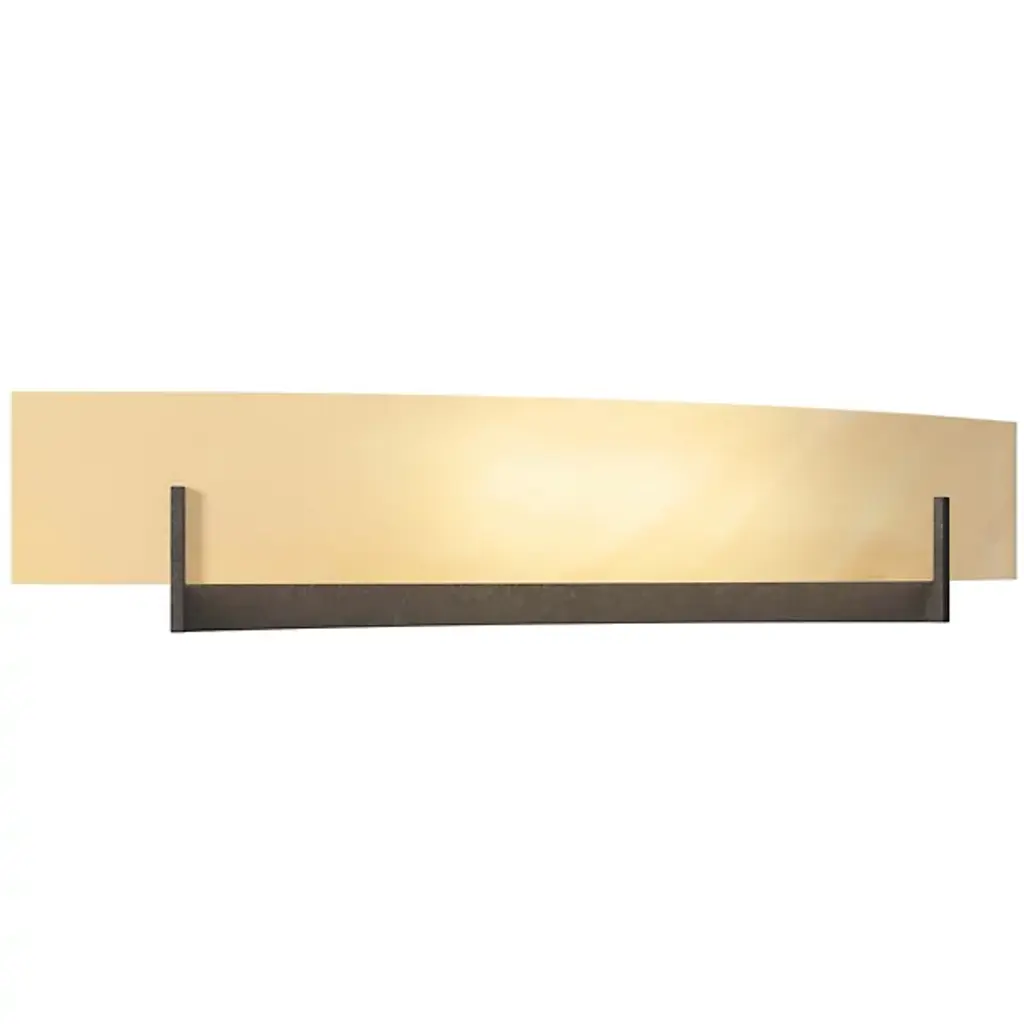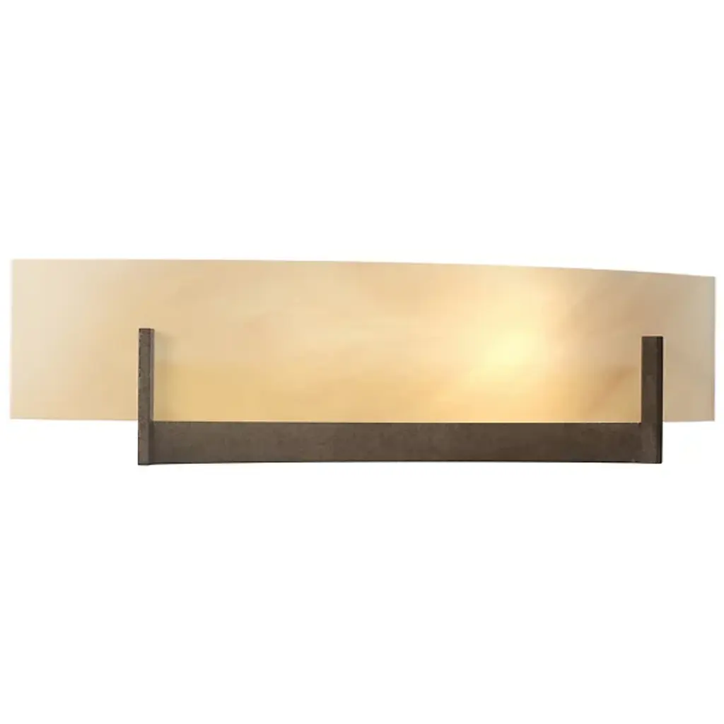 Contribute to warm, relaxed living with the Hubbardton Forge Axis Large Wall Sconce. A handsome addition to the bathroom, its pressed glass shade, and hand-forged metal supports offer a strong, balanced organic look for the soft contemporary dining room as well. Perfect for use in bedrooms, living rooms, dining rooms, and entryways. UL Listed Damp and suitable for use in bathrooms.