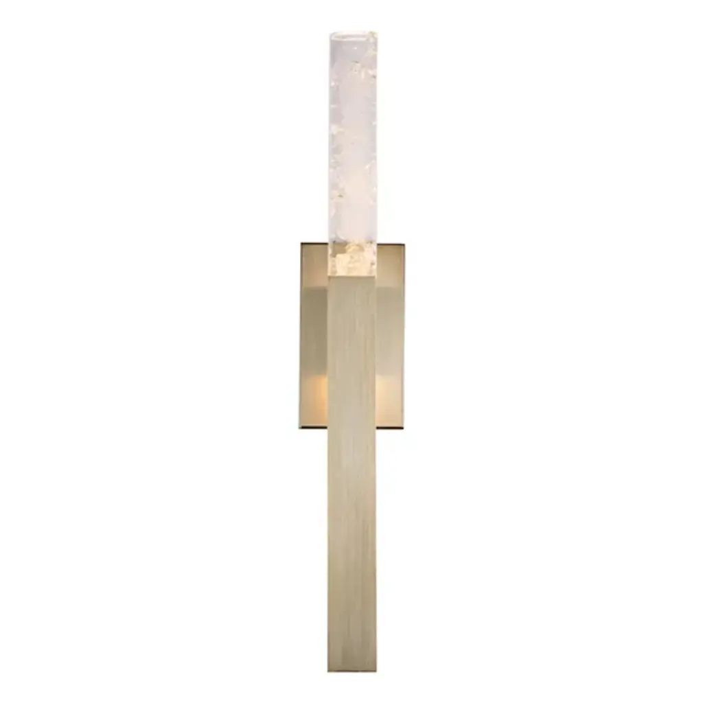 Make your walls even cooler with the icy presence of the Axis LED Indoor Wall Sconce from Hammerton Studio. A Levi Wilson design, the flat wall mount, short arm and long socket holder in polished metal contrast their flat sides and sharp angles with the soft-edged glass diffuser. Made using spare material from Hammerton’s glassblowing department, this prominent prism caps energy-efficient LED lamping, reducing its glare while adding depth to each unique glass interior and ambiance to the sconce’s surroundings.