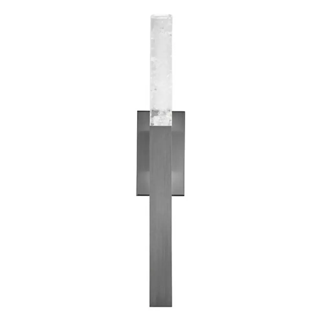 Make your walls even cooler with the icy presence of the Axis LED Indoor Wall Sconce from Hammerton Studio. A Levi Wilson design, the flat wall mount, short arm and long socket holder in polished metal contrast their flat sides and sharp angles with the soft-edged glass diffuser. Made using spare material from Hammerton’s glassblowing department, this prominent prism caps energy-efficient LED lamping, reducing its glare while adding depth to each unique glass interior and ambiance to the sconce’s surroundings.