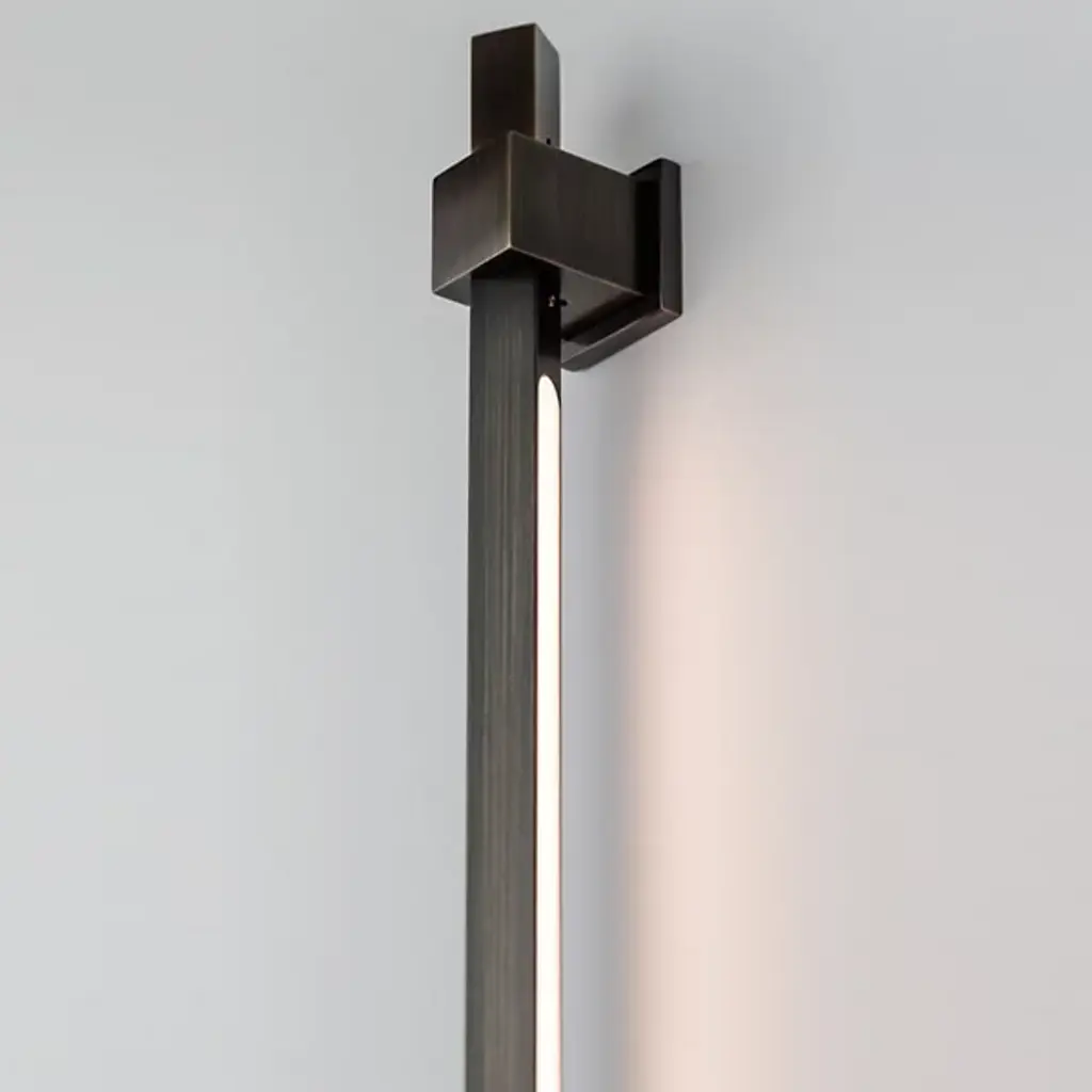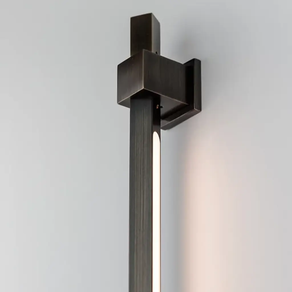 A standout in versatile lighting. Direct light wherever it is required with the elegantly rotating head of the Axis LED Wall Sconce from Boyd Lighting. It's a sharp piece whose simplicity makes it an easy addition in modern or traditional spaces. The attention to detail and skill of Boyd Lighting's craftsmen shows in the precision of geometric construction. This handcrafted metal piece mounts to your walls with a low-profile and slender figure. Cubed bracket framing the ends serve as the axis point for the versatile head. Sporting an LED array behind an acrylic diffuser, light shines through in a uniform stream with 280-degree rotation that moves effortlessly the twist of your hand.