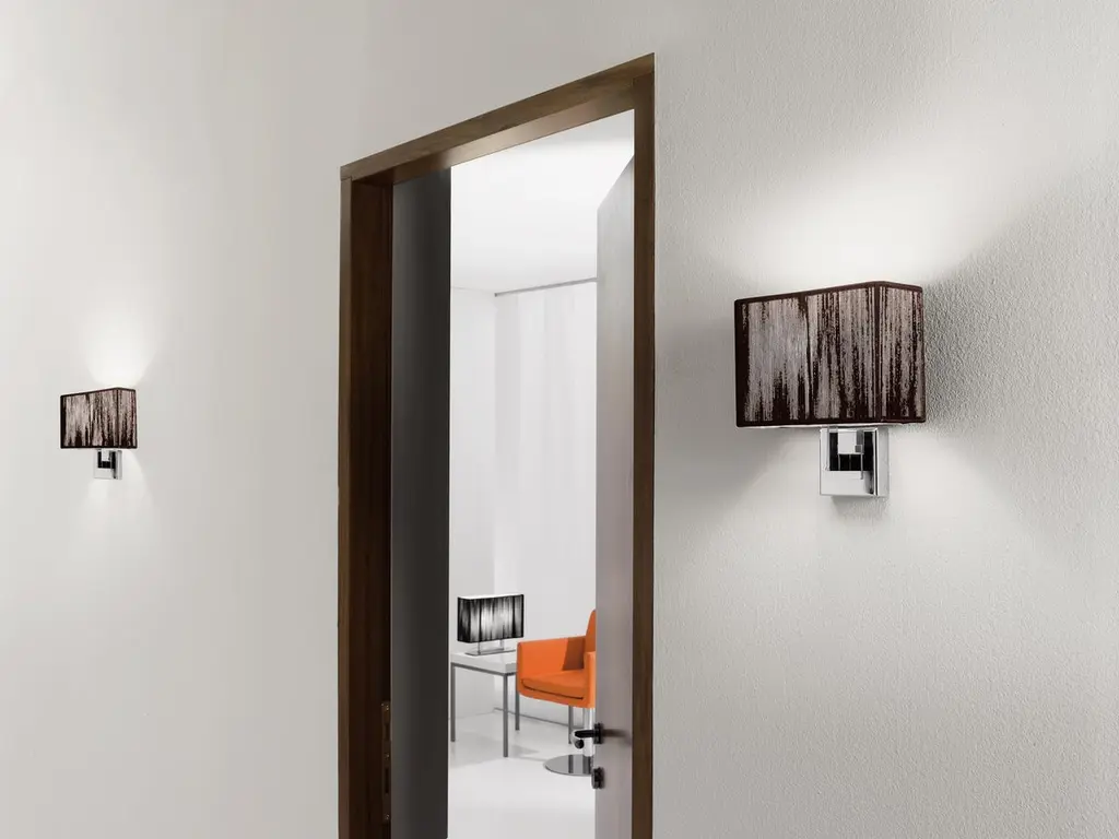 Axolight Clavius Small Wall Lamp with Arm in White Lampshade and Gold Finish by Manuel & Vanessa Vivian Admire the texture of a precious hand-made silken thread lampshade. Clavius expresses its refined elegance by radiating softness and atmosphere between light and shadow.Culture and craftsmanship. Manuel Vivian, a long-experienced designer, is an unwitting guardian of the best in Italian artistic and manufacturing tradition. He is an expert in artisan production processes, in his creations he sets no limits to experimentation.Additional information:Material: Metal frame and hand-made silken thread lampshadeFinish: WhiteColor: GoldE12Downlight and uplightInstalls over 4 in. octagonal J-boxPower supply 120V ACSwitch mode: on-off1 x Max 7W LED or1 x Max 13W fluoDRY LOCATIONDimensions: 20 W x 10 D x 15 H cmAvailable in other color option: TobaccoAvailable in other finsh option: Chrome