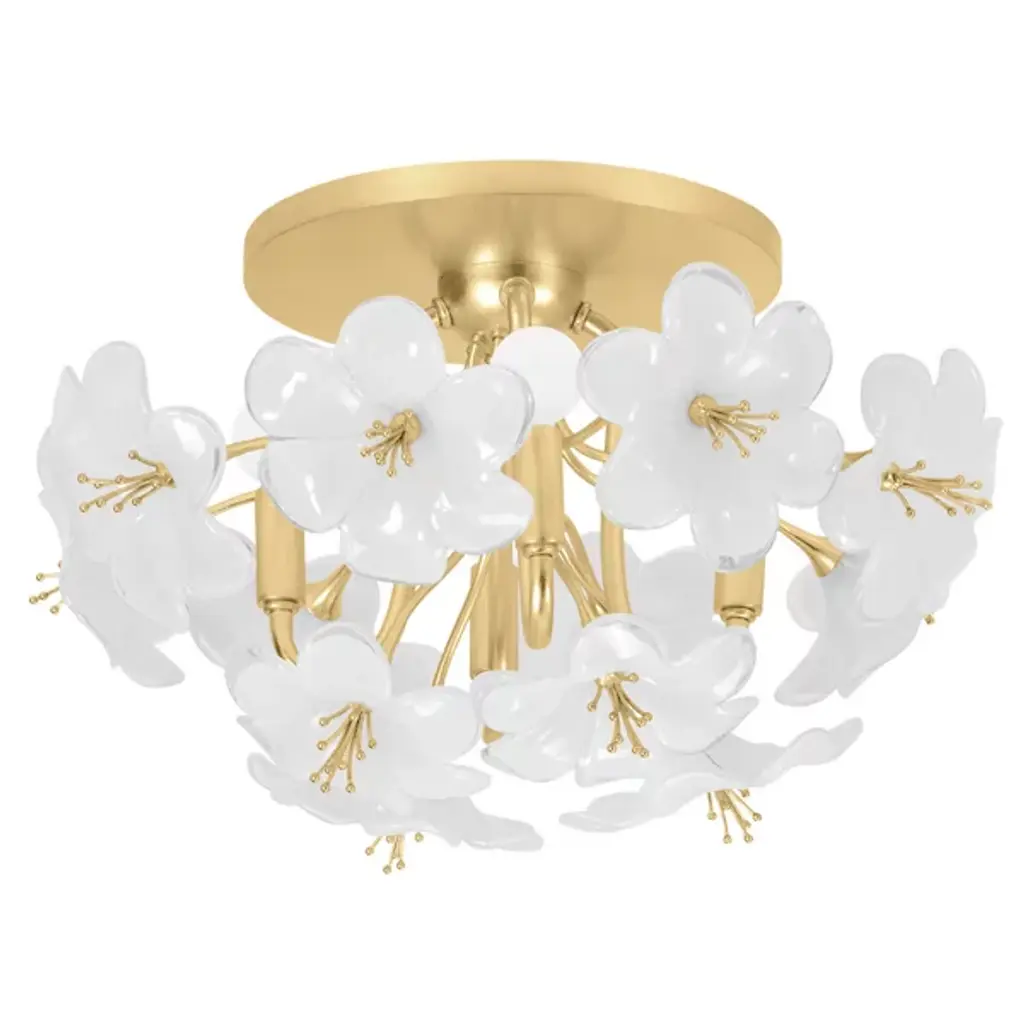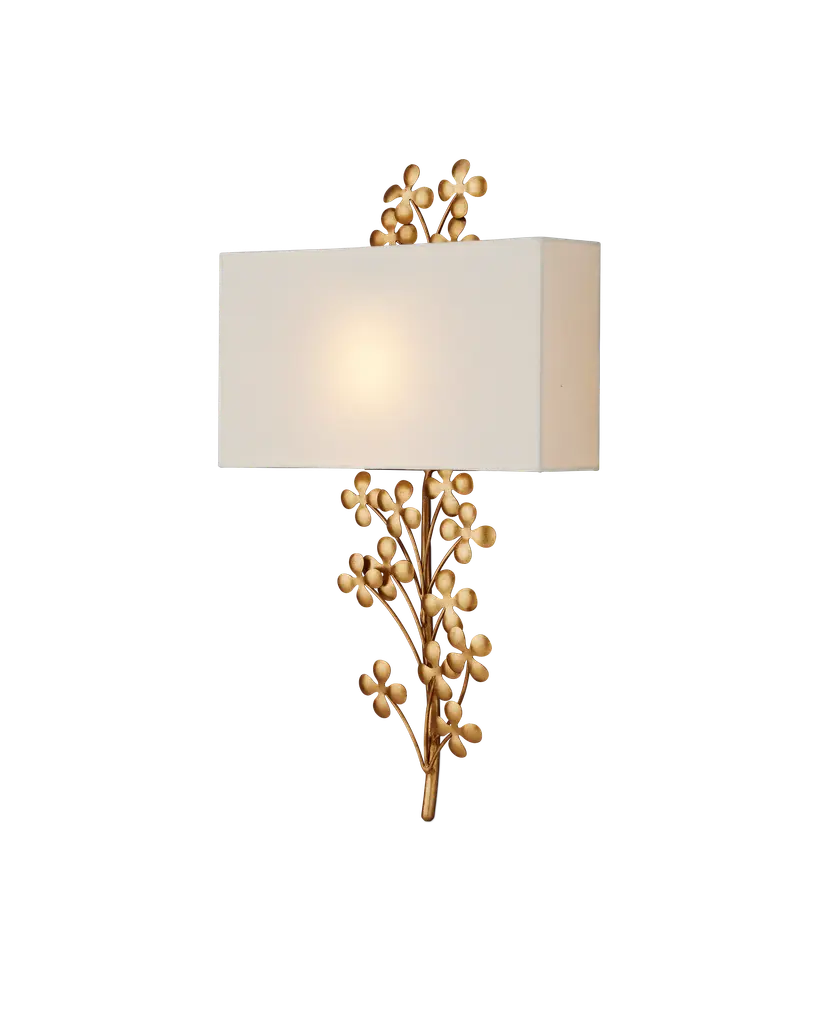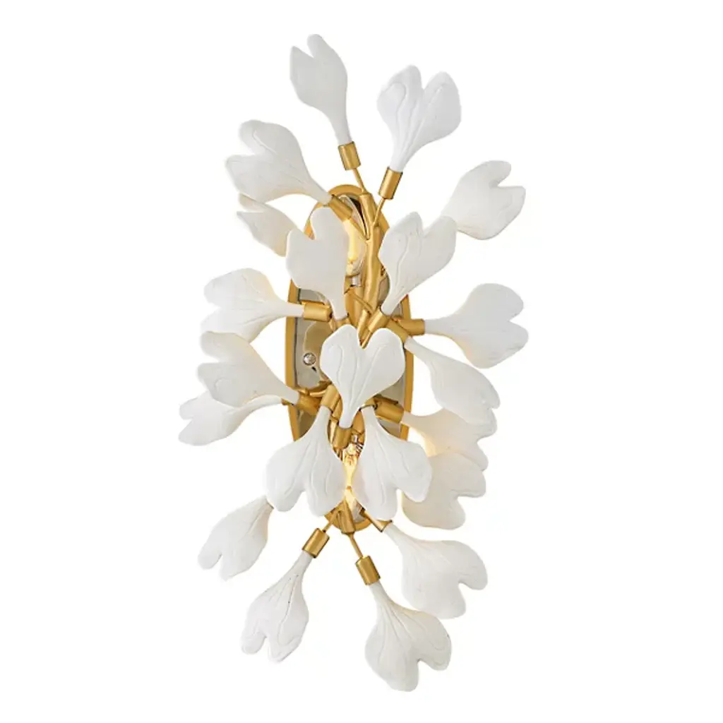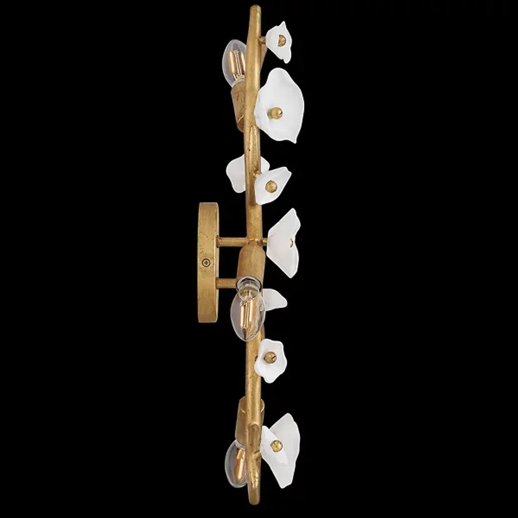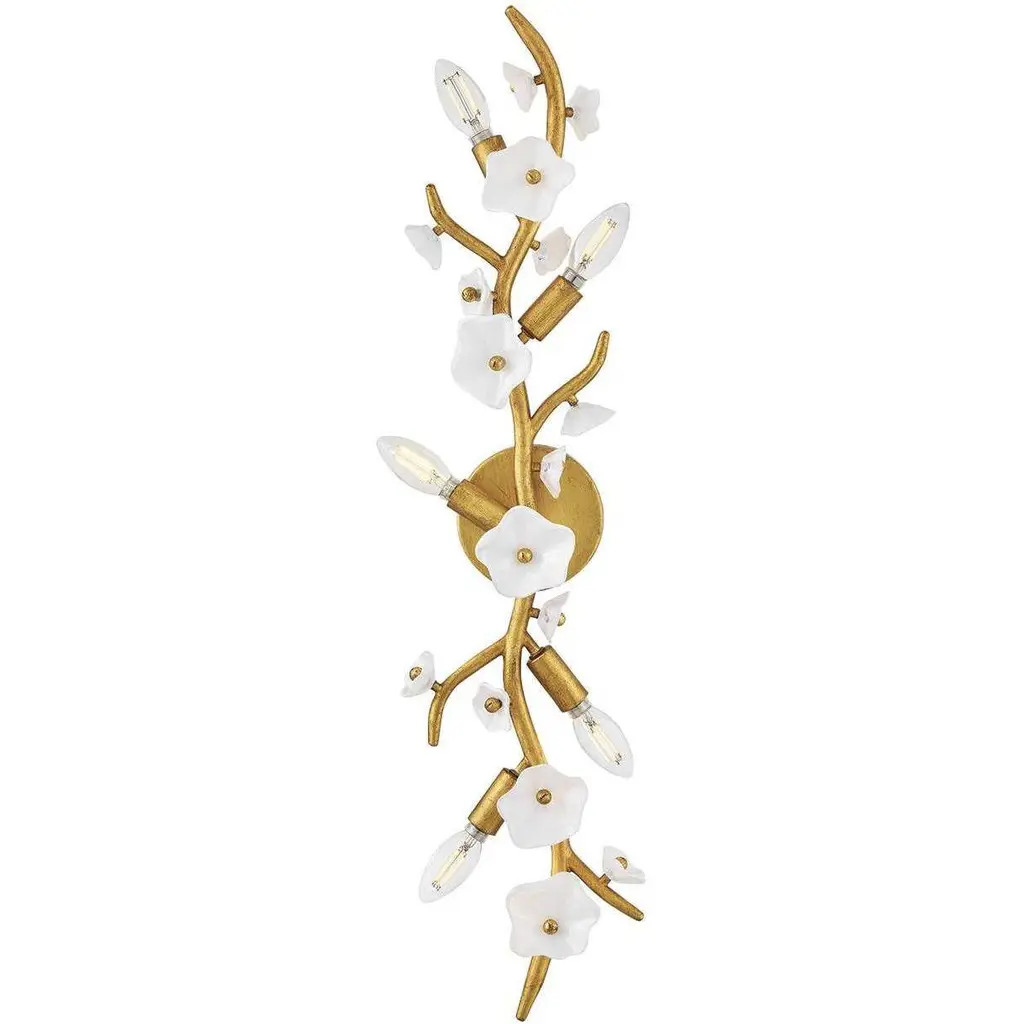 The Azalea Wall Sconce from Fredrick Ramond captures springtime's ephemeral beauty. Double-layered glass flowers bloom along the linear frame, combining clear and painted surfaces for dimensional depth. Each blossom catches and reflects light differently, while dimmable bulbs allow for varied moods. The frame's distressed metal provides an organic foundation for the glass garden. This sconce turns a simple wall into an ever-changing display of light and shadow that shifts throughout the day.