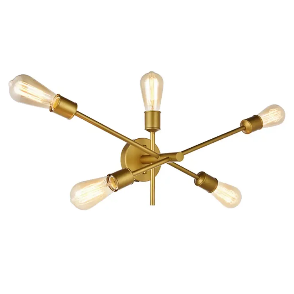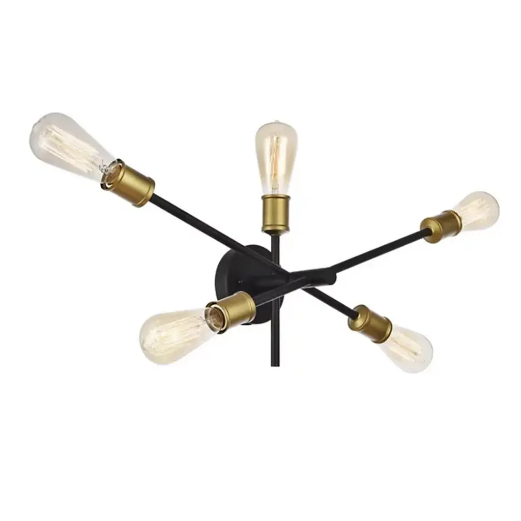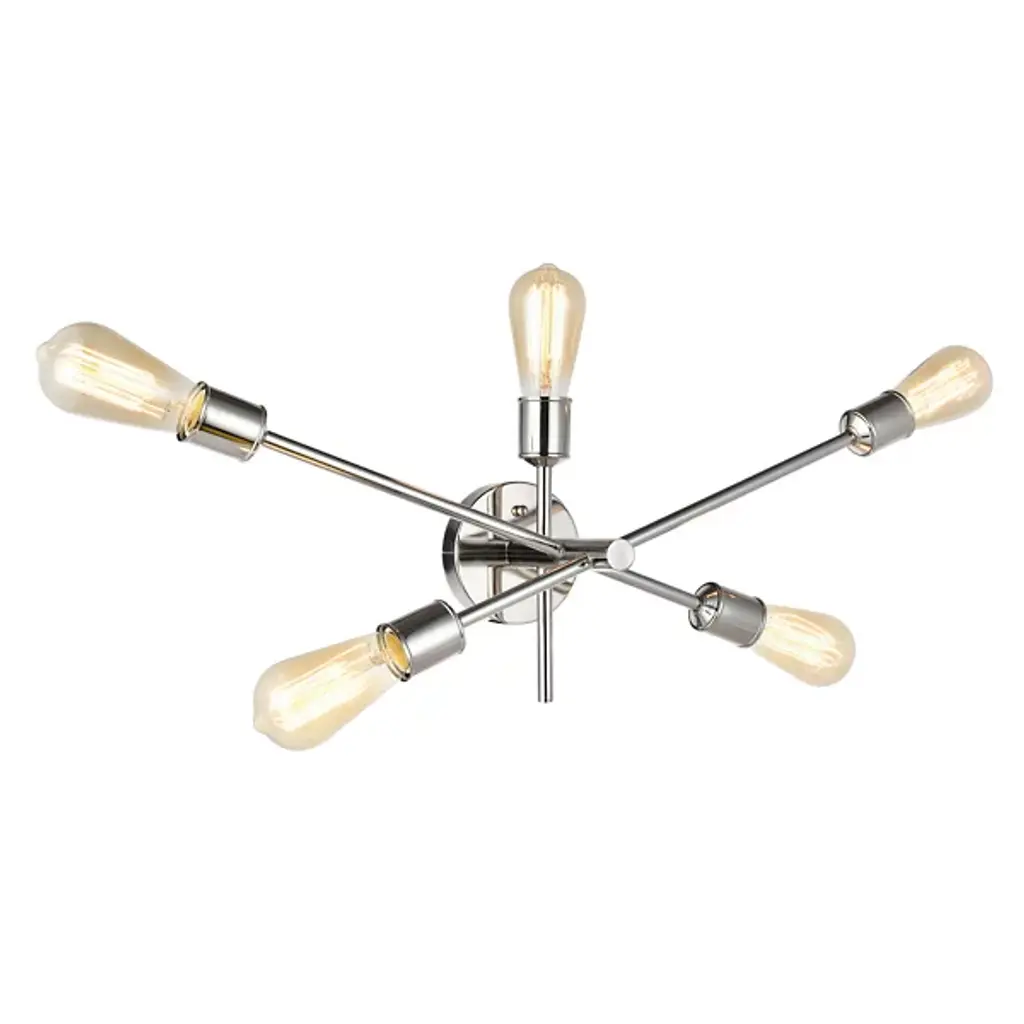 The Azel Wall Sconce from Huxe epitomizes modern sophistication with a playful twist. Its five arms intersect an oval base at different points, allowing for versatile light directionality. With five light sources (bulbs not included), it serves various applications, from hallways to accent lighting. The industrial-inspired design sans shades exudes a contemporary vibe, while the finish adds an art deco touch. Stylish and cutting-edge, the Axel strikes a perfect balance between flair and functionality.