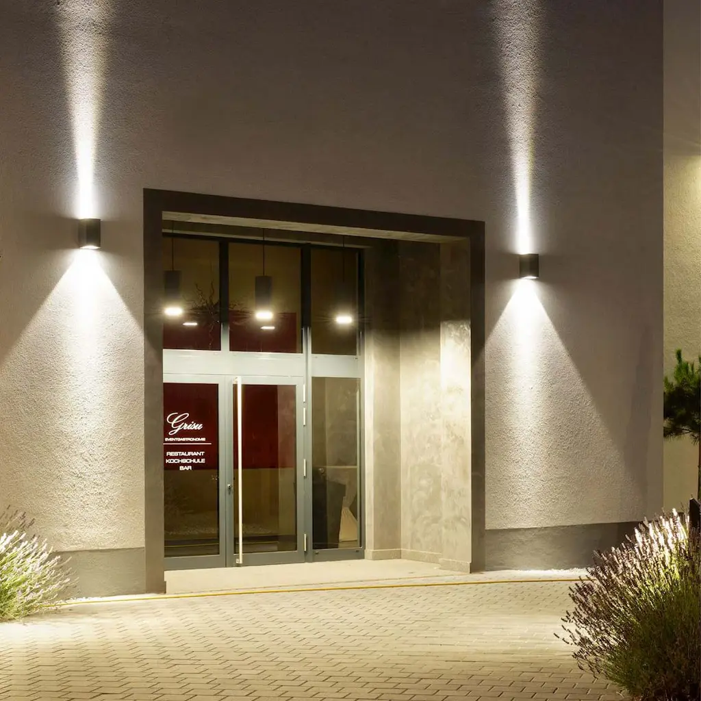 The B33580/B33591 Narrow Beam Outdoor LED Wall Sconce from Bega provides focused downlighting ideal for patios and entrance areas. Constructed from die-cast aluminum with clear tempered glass, it is available in classic finishes to complement any setting. Equipped with an integrated 120-volt electronic LED driver featuring 0-10 volt dimming, this gasketed fixture is weather-resistant and designed for durability. Its replaceable LED modules ensure long-term performance and easy maintenance for both indoor and outdoor environments. Highlights