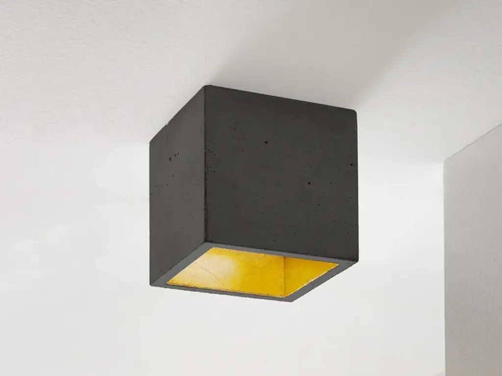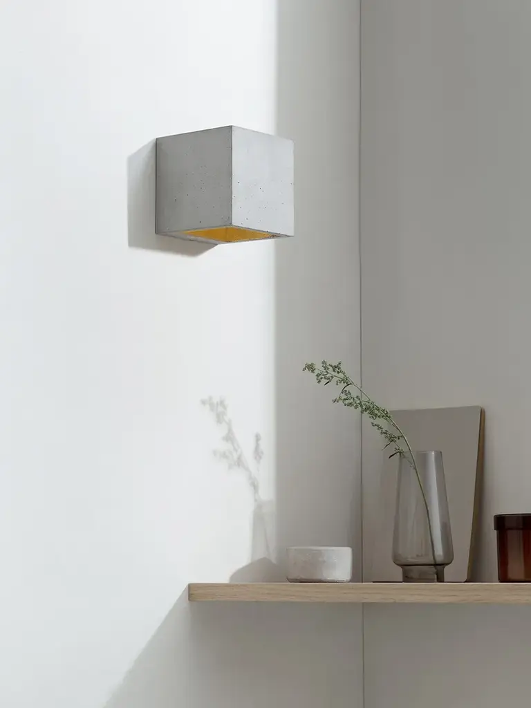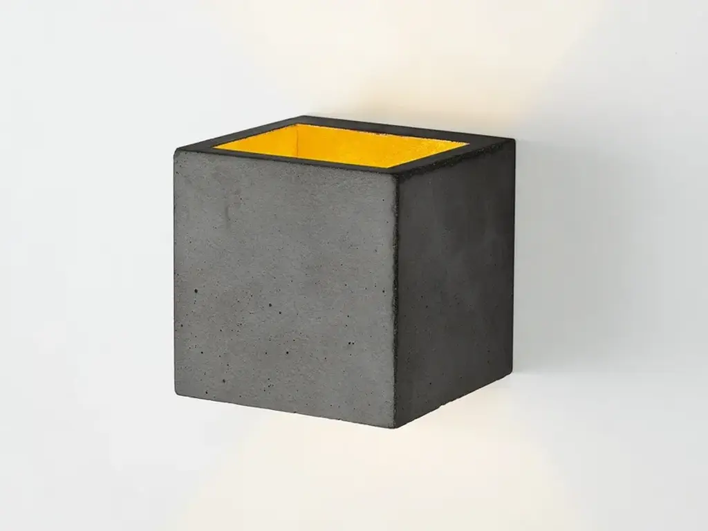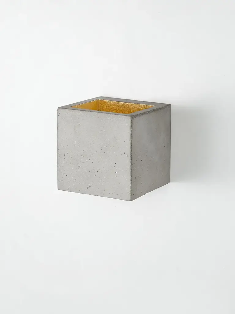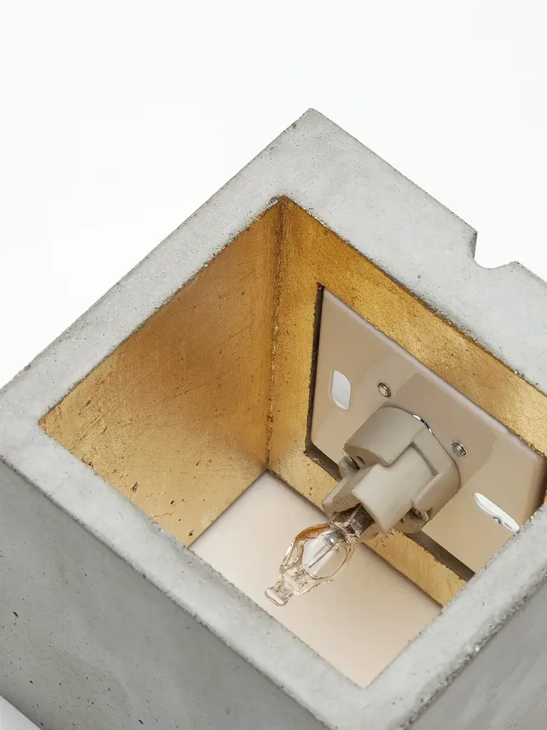 The rectangular wall lamp [B9] is cast from dark grey concrete and comes with a gold, silver or copper plating on the inside. The wall lamp works great as a solitary "eye-catcher" or alternatively it could be combined in a series along the entire length of a wall. Due to its minimalistic design and the contrasting materials, the lamp is modern and timeless at the same time and can therefore be combined with any style. Included: The handmade lamp shade is delivered ready to install with two GU9 bulb mounts and mounting hardware. The lamp requires two GU9 light bulbs (please note that the bulbs are not included). Energy label: A++ to ERated Voltage: max 240V (50/60Hz) Watts: max 60W.