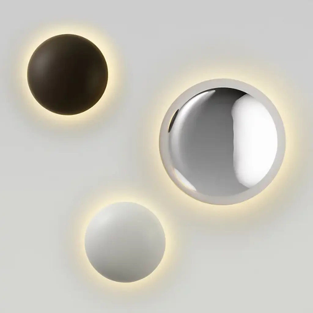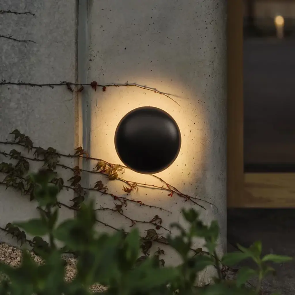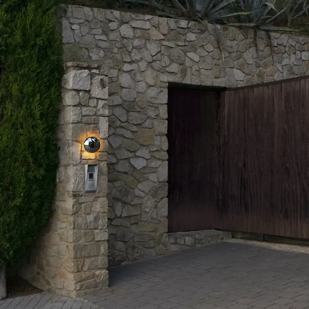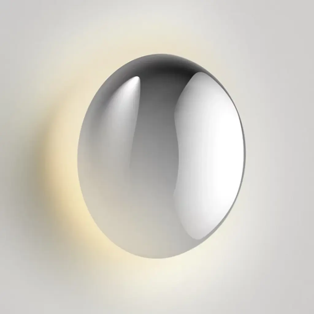 The Babila outdoor wall sconce projects indirect ambient light creating a gentle aura as light and shadow contrast against the rounded metal shade. An energy efficient LED source directs light on the wall behind the sconce providing pleasant illumination as the day turns into night. The polished option acts as a mirror reflecting the surroundings.