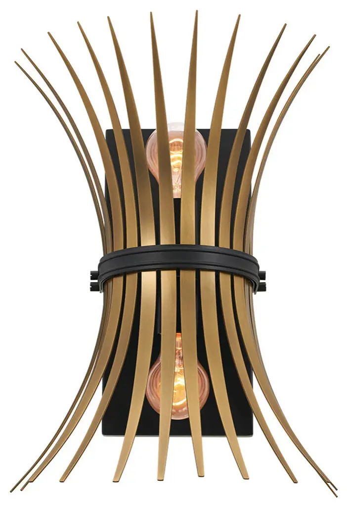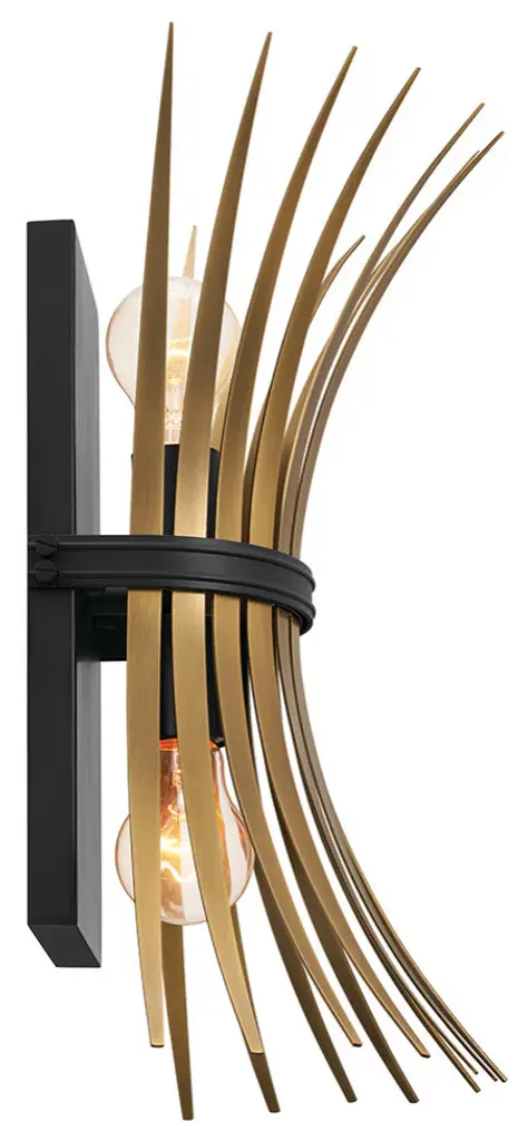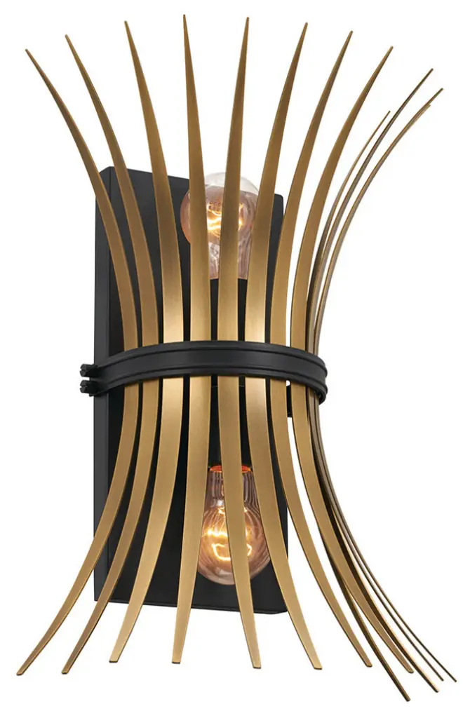Baile 16.2" 2 Light Wall Sconce, Natural Brass And Black