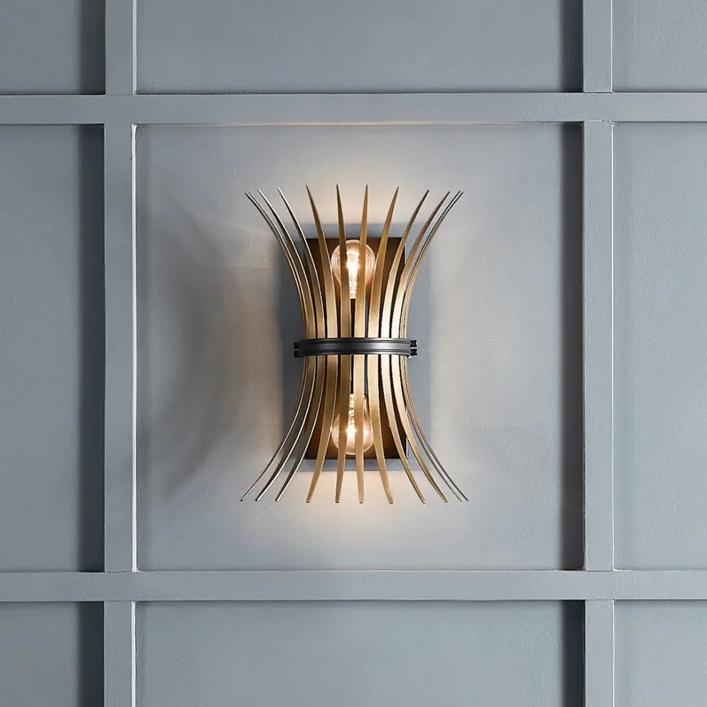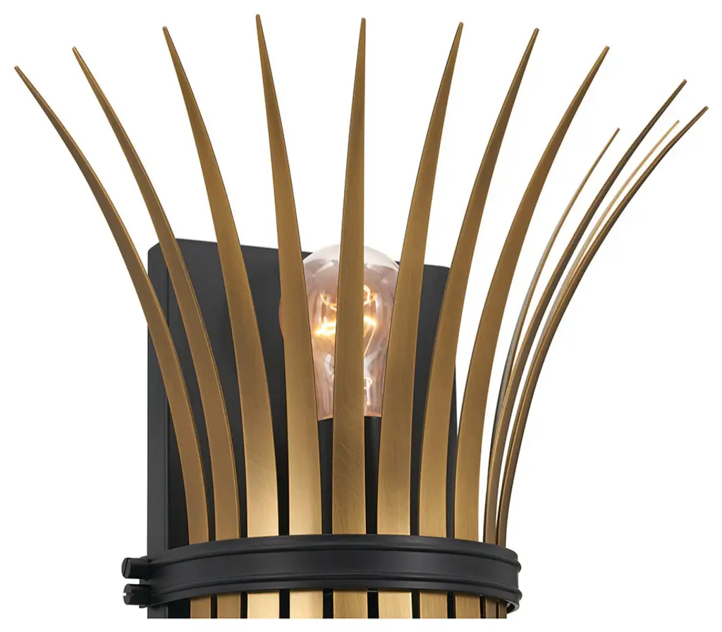 This Baile wall sconce refines the gathered wheat motif. Natural Brass arcs cinched by an elegant Black band add a pinch of vintage-inspired energy to your space, even when the lights are off.