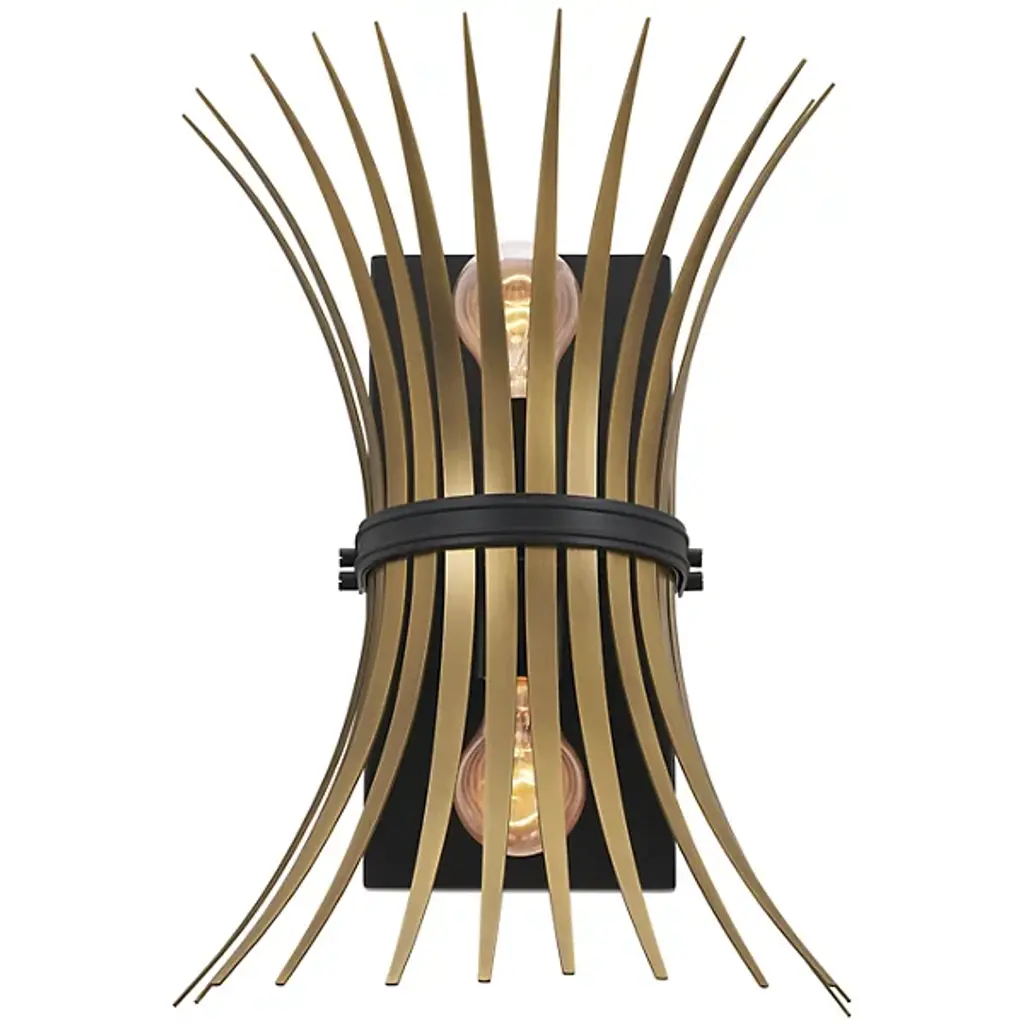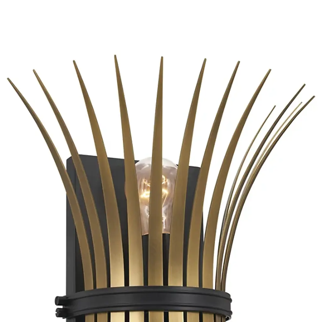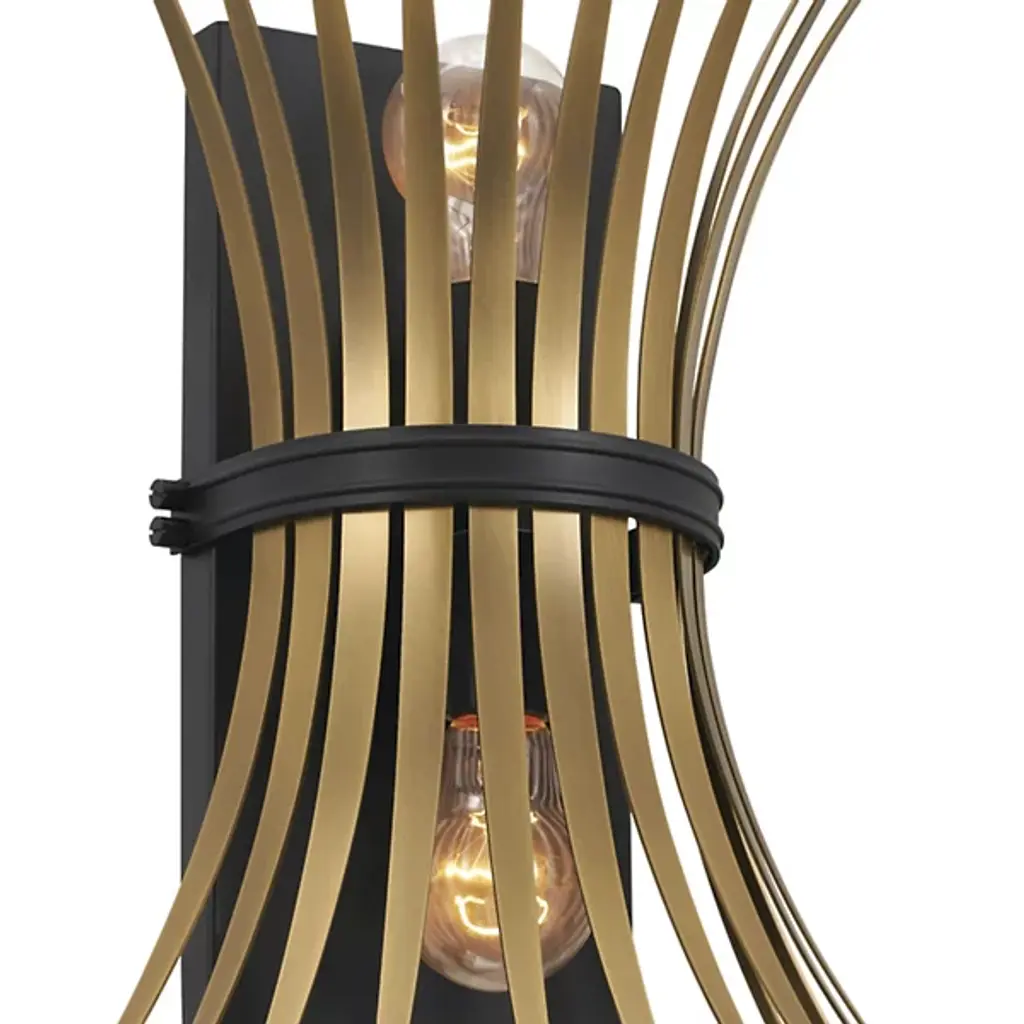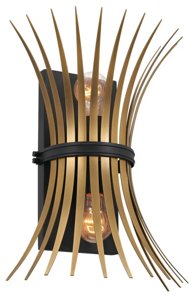 Let the Baile Wall Sconce by Kichler Illuminate your home. Crafted with the quintessential, pointed strand formation prevalent throughout the Baile family of light fixtures, this wall sconce boasts an elegant steel ring that is secured by a rectangular backplate at your wall. Aligned with this backplate are incandescent bulbs neatly encased. Both bulbs are vertically positioned, with one bulb at the sconce’s summit and the other at the bottom. This wall-mounted furnishment brings light to your 21st-century entryways and walkways.