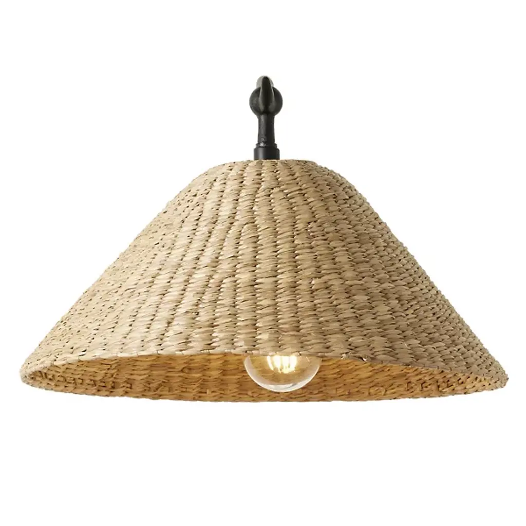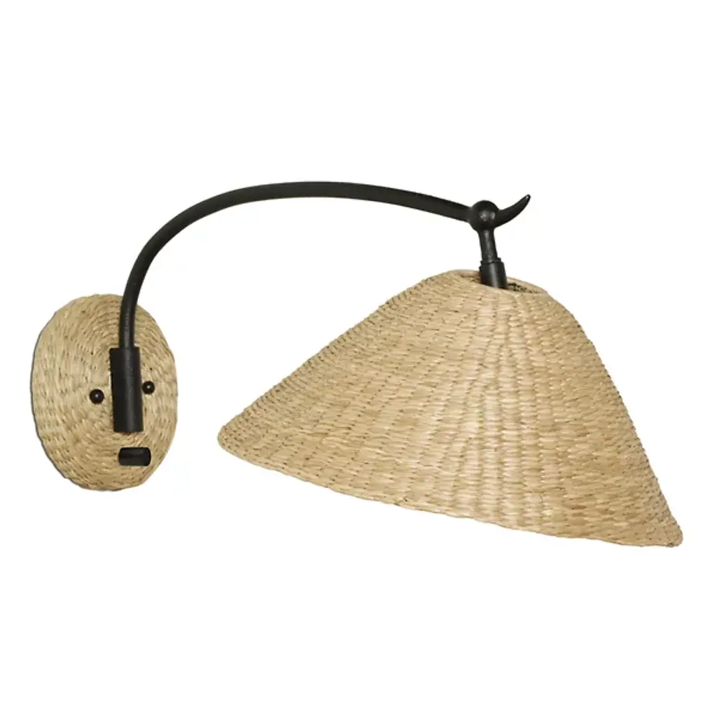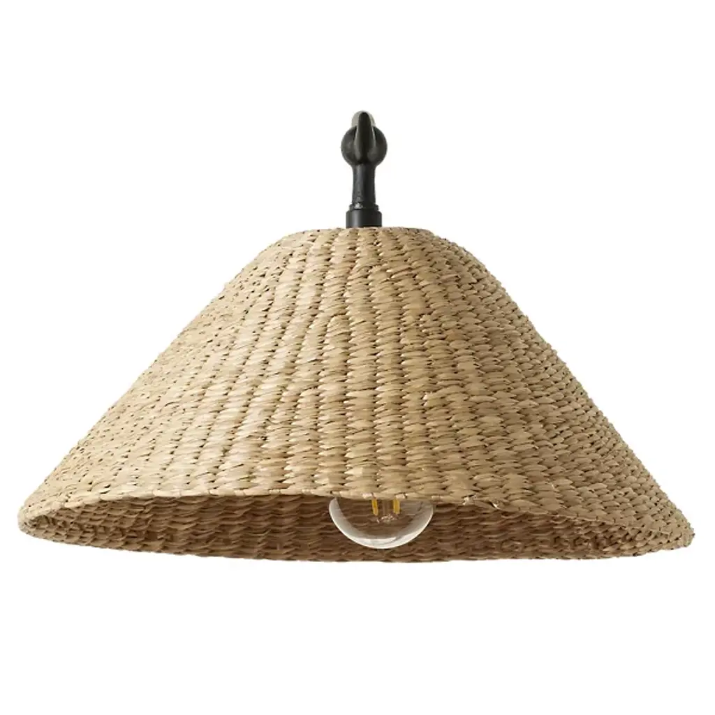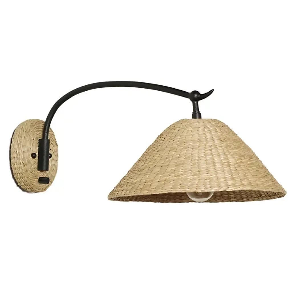 The Bainbridge Swing Arm Wall Sconce from Woven puts functional lighting within easy reach wherever you need it. The articulated arm extends from a wall-mounted plate, allowing you to direct light precisely for reading, working, or ambient illumination. An iron frame supports the natural seagrass shade, which casts a warm, diffused glow while maintaining the fixture's airy feel. The convenient on/off switch mounted directly on the wall plate makes operation simple without disrupting the sconce's fluid lines. This adjustable design proves that practical lighting can also be naturally beautiful.
