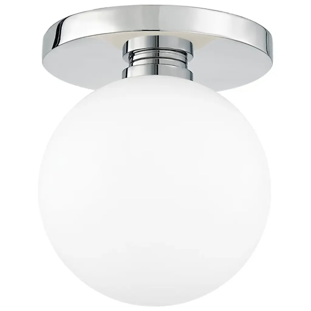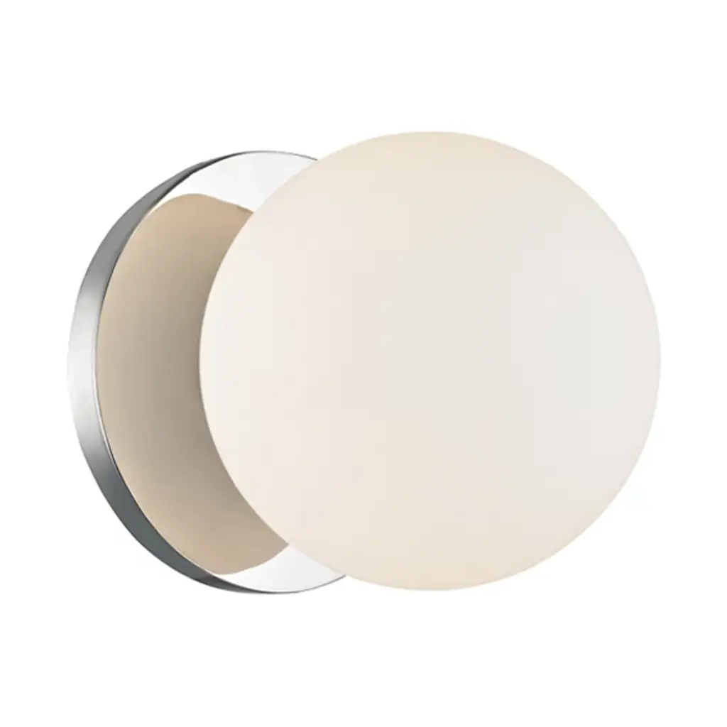 The Hudson Valley Baird Wall Sconce/Flushmount features artisan quality paired with simplicity. The mouth blown glass shade diffuses the illumination, complemented with a round backplate. Both classic and modern, this light option will bring a contemporary air with straightforward appeal.