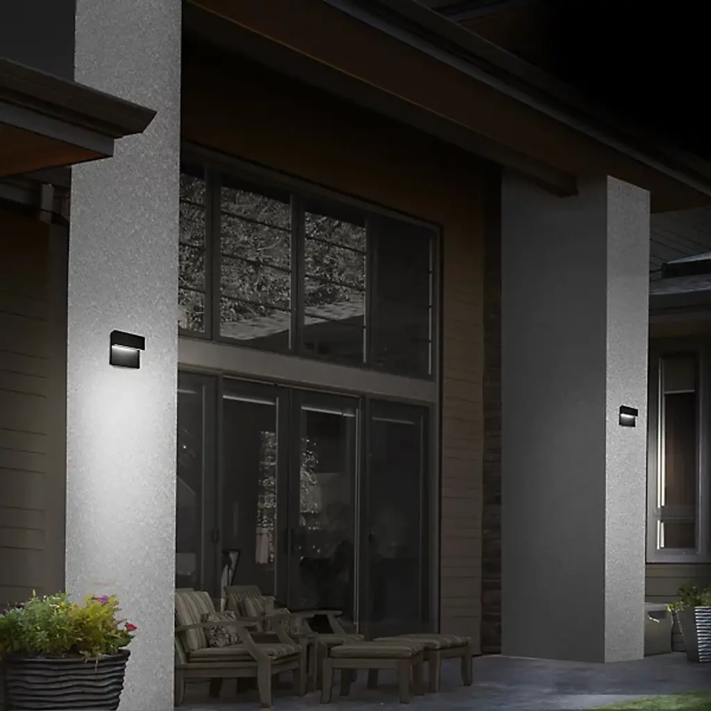 The Balance LED Outdoor Wall Sconce by dweLED has a simple, stepped design that complements a range of spaces and architectural styles. Bringing a mix of form and function to its environment, this contemporary piece can provide an upward or downward layer of energy-efficient illumination to spaces depending on how it is installed. A uniform finish gives this low-profile design a tailored look, and the tempered glass diffuser offers plenty of light to make this a practical addition to outdoor locations.