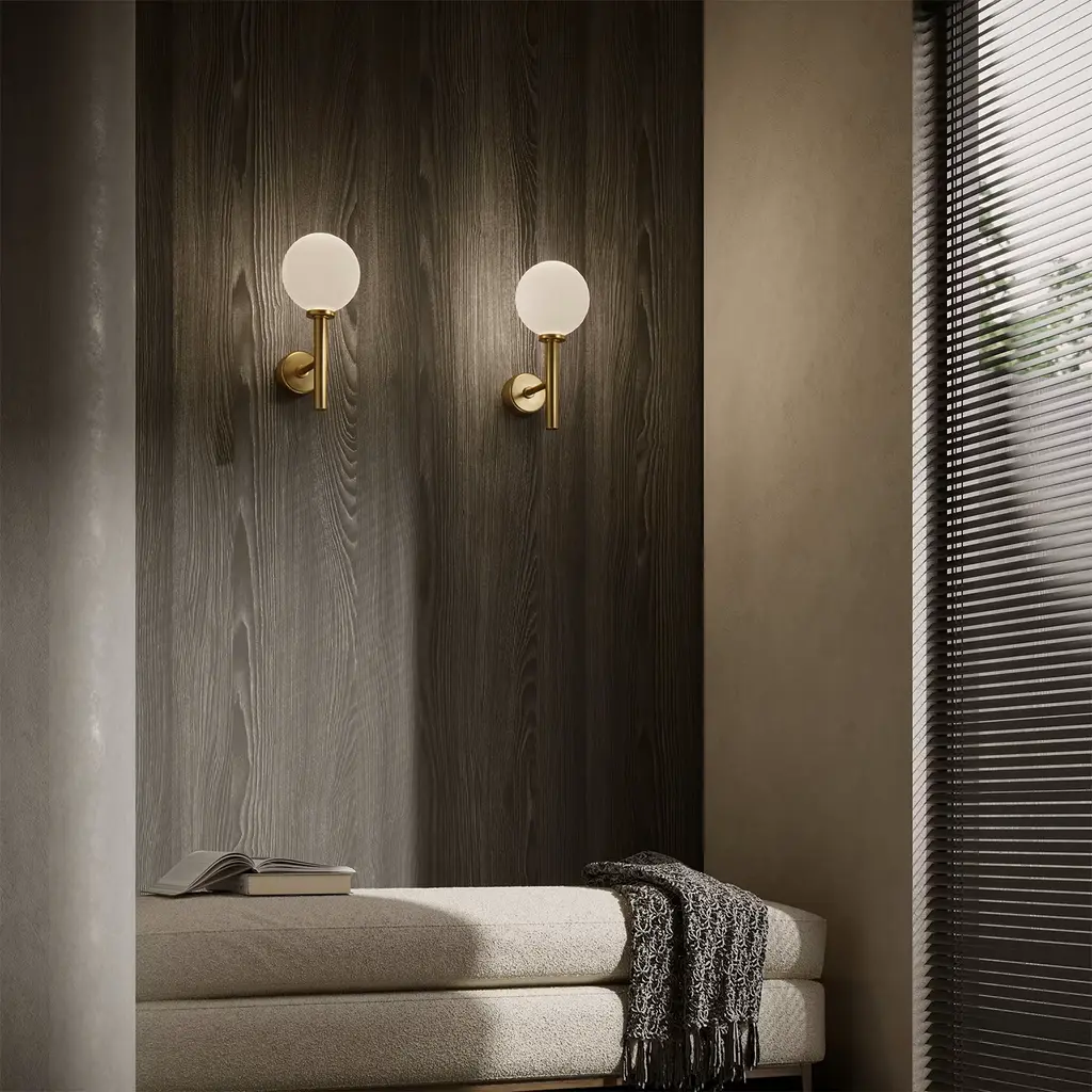 Elevate your home lighting with this exquisite wall sconce from Stillux —crafted with both beauty and functionality in mind. The circular wall mount hosts two perpendicular bars supporting the matte glass sphere, the contrasting materials and finishes revealing a striking dynamism that will not go unnoticed. Guaranteeing suffused and elegant illumination, it is best arranged in multiples for highly decorative clusters. For US electrified version, a disk of the same finish will be applied behind the lamp base to hide the jbox. Please contact the Concierge for more information.