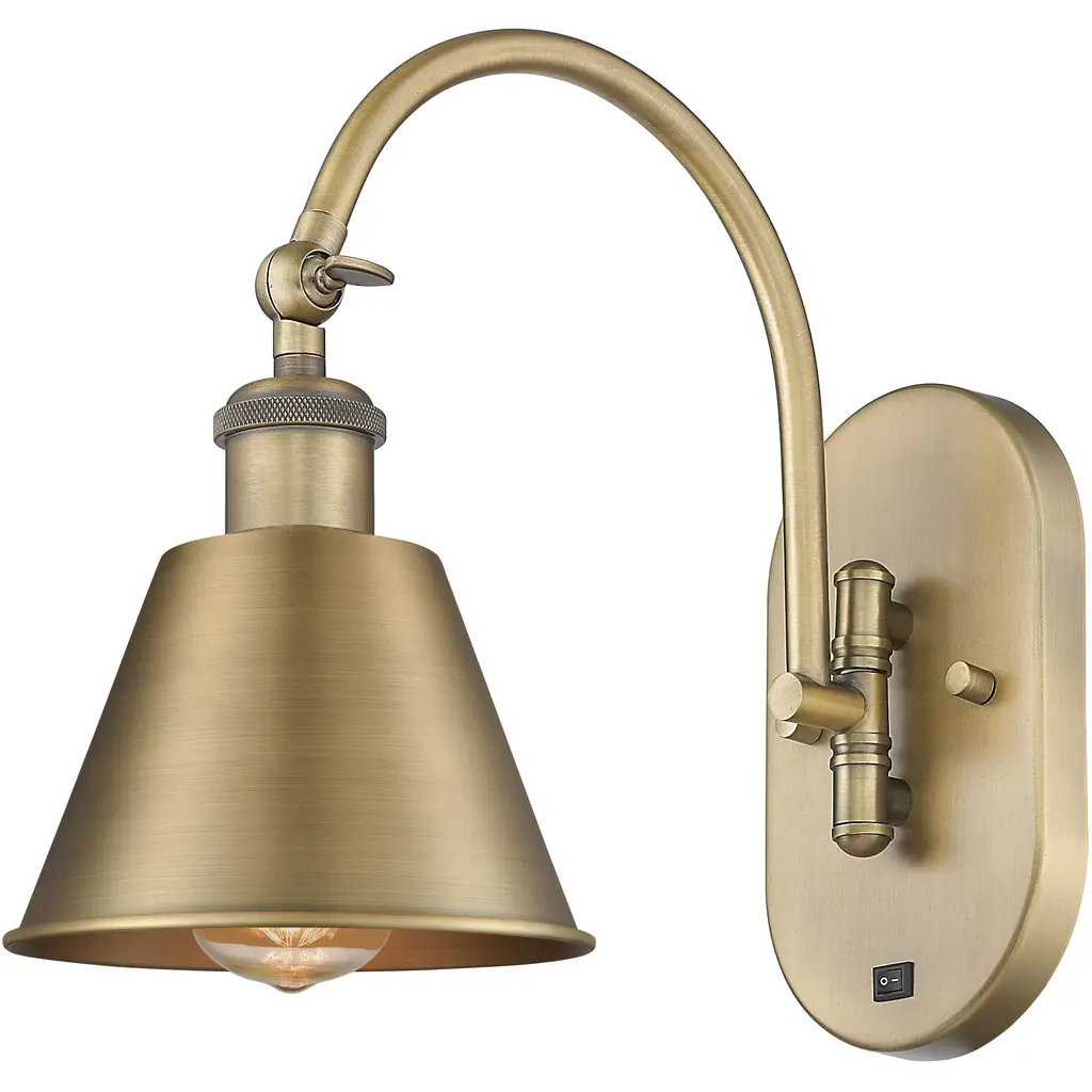 A truly dynamic fixture, the Ballston fits seamlessly amidst most decor styles. Its sleek design and vast offering of finishes and shade options makes the Ballston an easy choice for all homes.Features:Solid brass 180 degree adjustable swivels with internal teeth that lock in at 5 degree intervalsThe on/off rocker switch is located at the bottom of the backplateFixture can be hung with bulbs facing up or down7.88" x 4.5" 2mm heavy cast backplateThe interior finish of the shade matches the exterior finish of the shadeDistance from outlet opening to top of fixture 7.06 inchesRated for 100 watt maximumUL/CUL Damp RatedThe arm swivels side to side at the baseCompatible with Incandescent, LED, Fluorescent and Halogen bulbsNumber of Bulbs: 1Bulb Wattage: 60Bulb Type: IncandescentBulb Included: Not IncludedVoltage: 120Finish: Brushed Brass