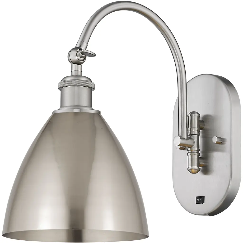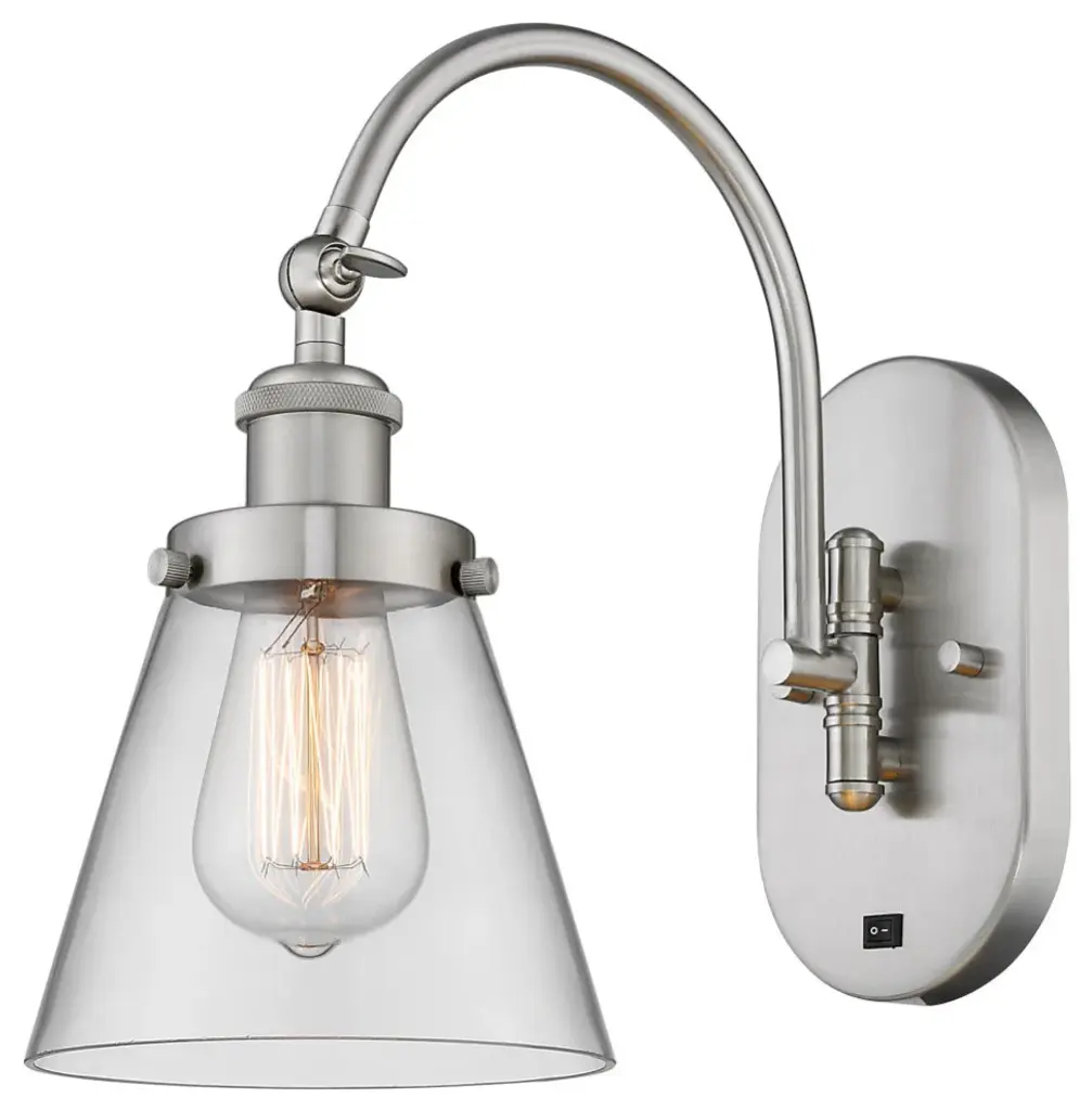 A truly dynamic fixture, the Ballston fits seamlessly amidst most decor styles. Its sleek design and vast offering of finishes and shade options makes the Ballston an easy choice for all homes.Features:Solid brass 180 degree adjustable swivels with internal teeth that lock in at 5 degree intervalsThe on/off rocker switch is located at the bottom of the backplateFixture can be hung with bulbs facing up or down7.88" x 4.5" 2mm heavy cast backplateThe interior finish of the shade matches the exterior finish of the shadeDistance from outlet opening to top of fixture 7.06 inchesRated for 100 watt maximumUL/CUL Damp RatedThe arm swivels side to side at the baseCompatible with Incandescent, LED, Fluorescent and Halogen bulbsNumber of Bulbs: 1Bulb Wattage: 3.5Bulb Type: LEDBulb Included: IncludedVoltage: 120Finish: Brushed Satin Nickel