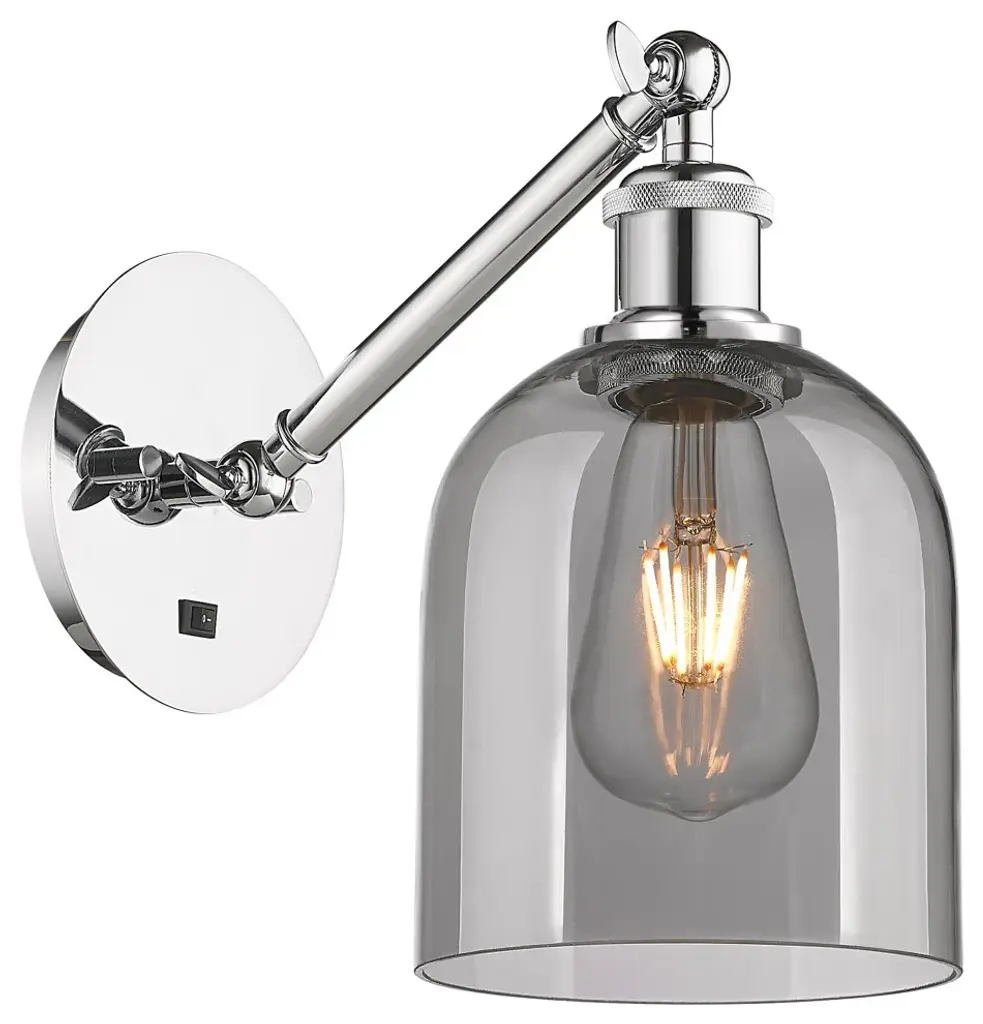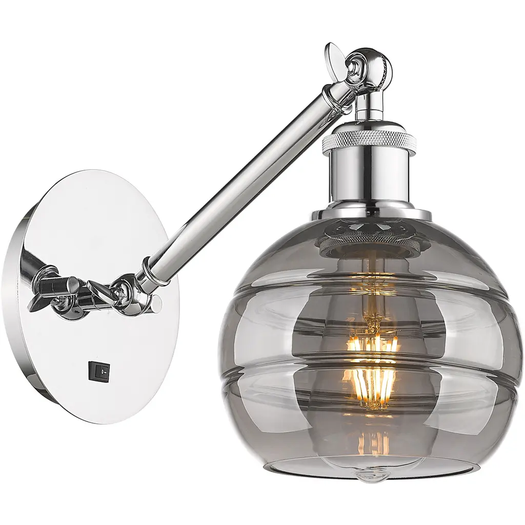 Ballston-Rochester 1-Light 6" Sconce, Up/down Arm, Polished Chrome, Light Smoke