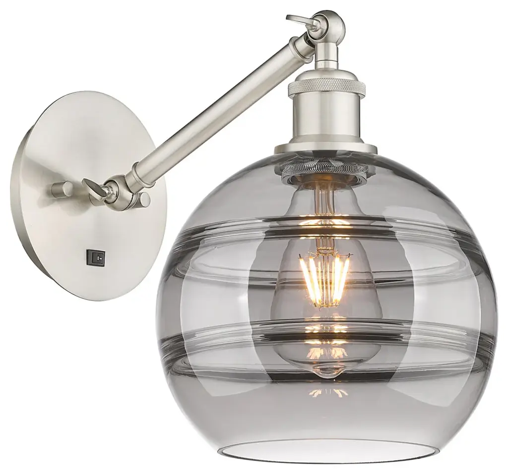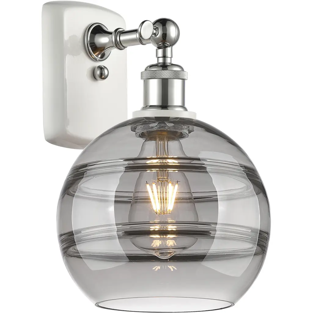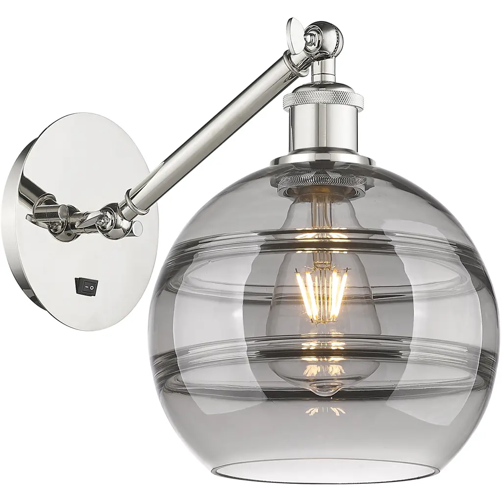 Ballston-Rochester 1-Light 8" Sconce, Up/down Arm, Polished Nickel, Clear