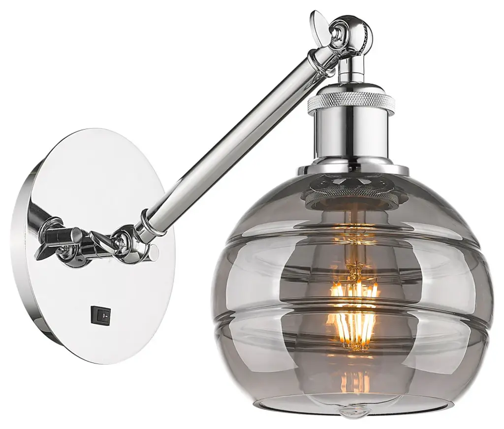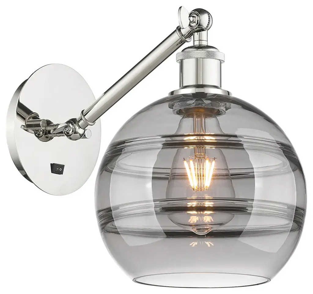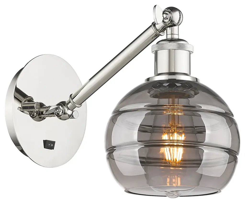 Ballston-Rochester 1-Light 8" Sconce, Up/down Arm, Satin Nickel, Light Smoke