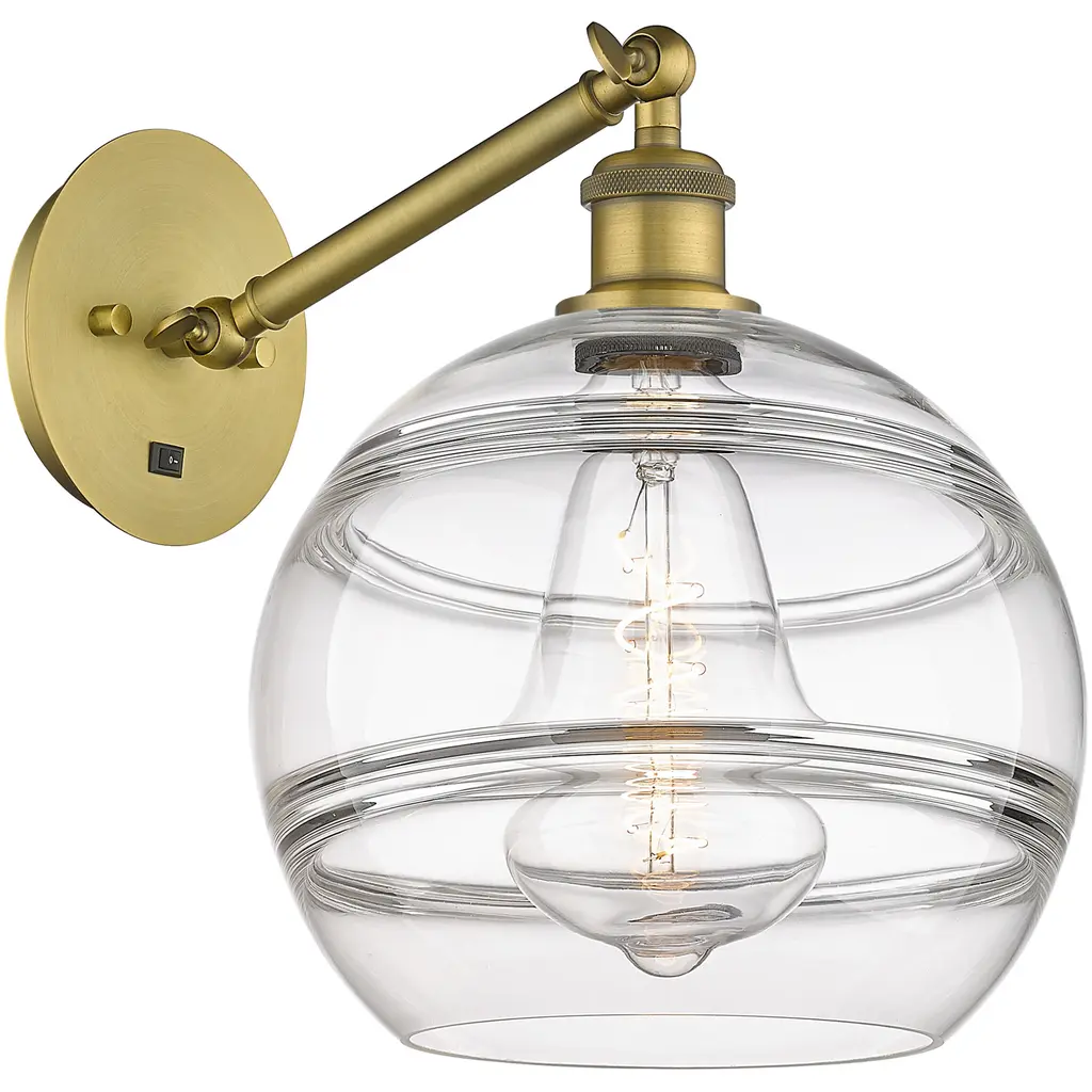 Ballston Rochester Armed Sconce Wall Light In Brushed Satin Nickel, Clear Glass